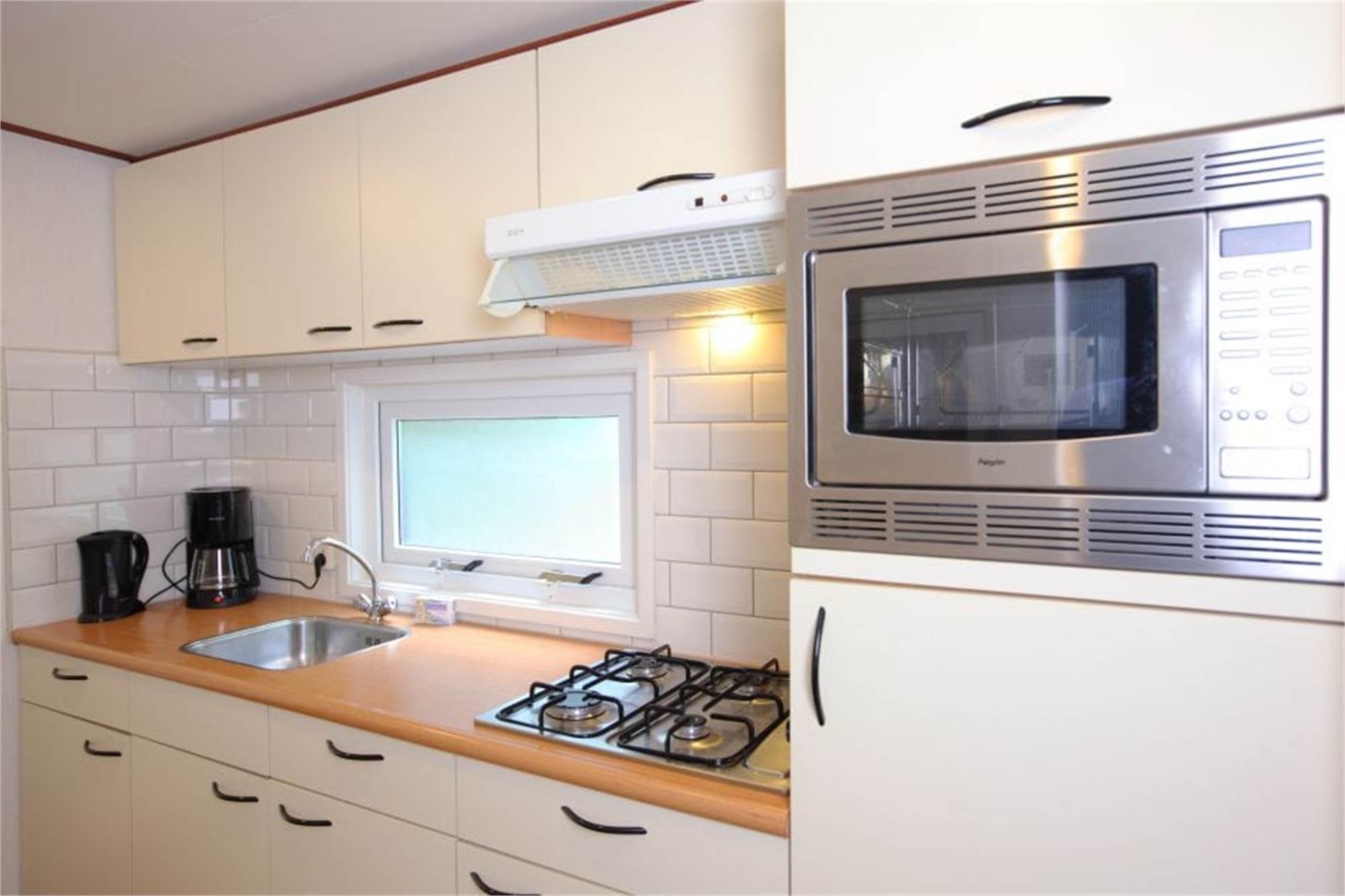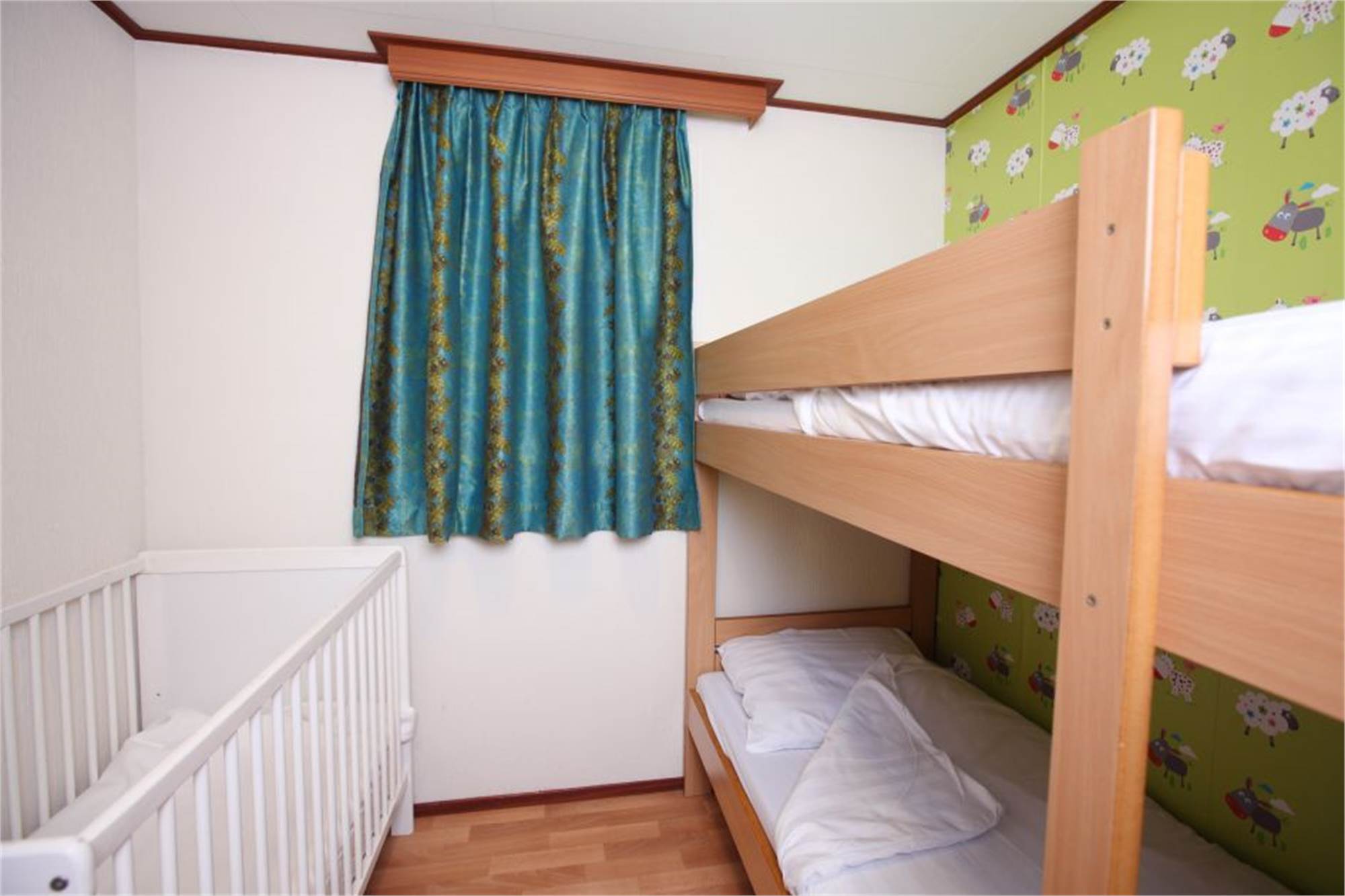 Dieses freistehende Chalet eignet sich für 2 Erwachsene, 2 Kinder und ein 1 Baby. Es gibt ein Wohnzimmer mit Essbereich und eine offene Küche mit Kombi-Mikrowelle. Außerdem verfügt die Unterkunft über 2 Schlafzimmer, eins mit 2 Einzelbetten und eins mit Etagenbett und Kinderbettchen. Im Badezimmer befinden sich Dusche und Waschtisch und es gibt eine separate Toilette. Durch die Flügeltüren im Wohnzimmer gelangen Sie auf die möblierte Terrasse.