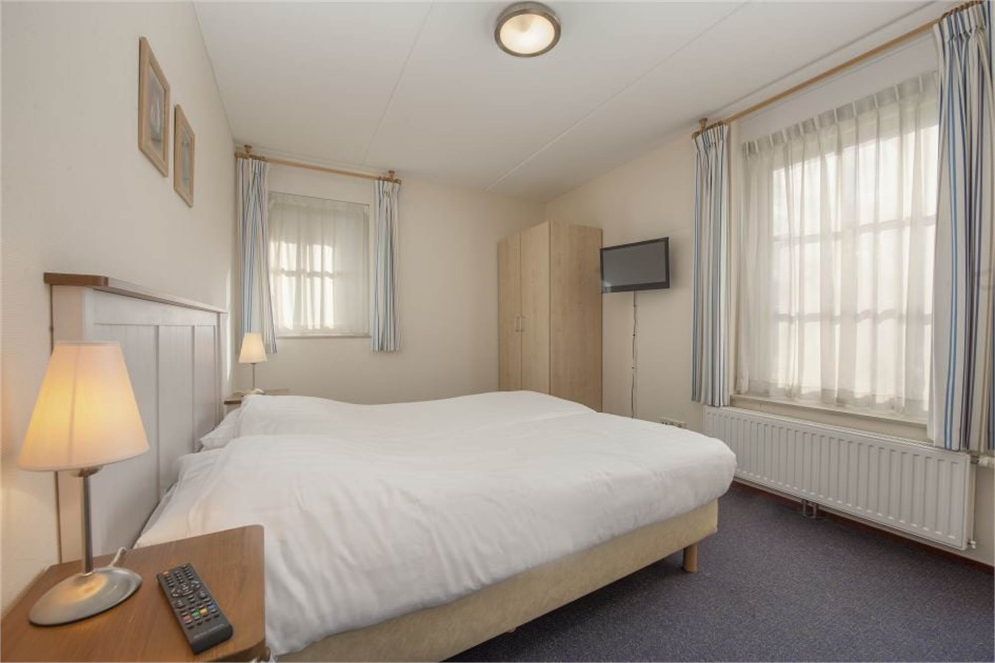 Etage: zwei Schlafzimmer mit je zwei Einzelbetten. Badezimmer mit Dusche, Waschtisch und Toilette.