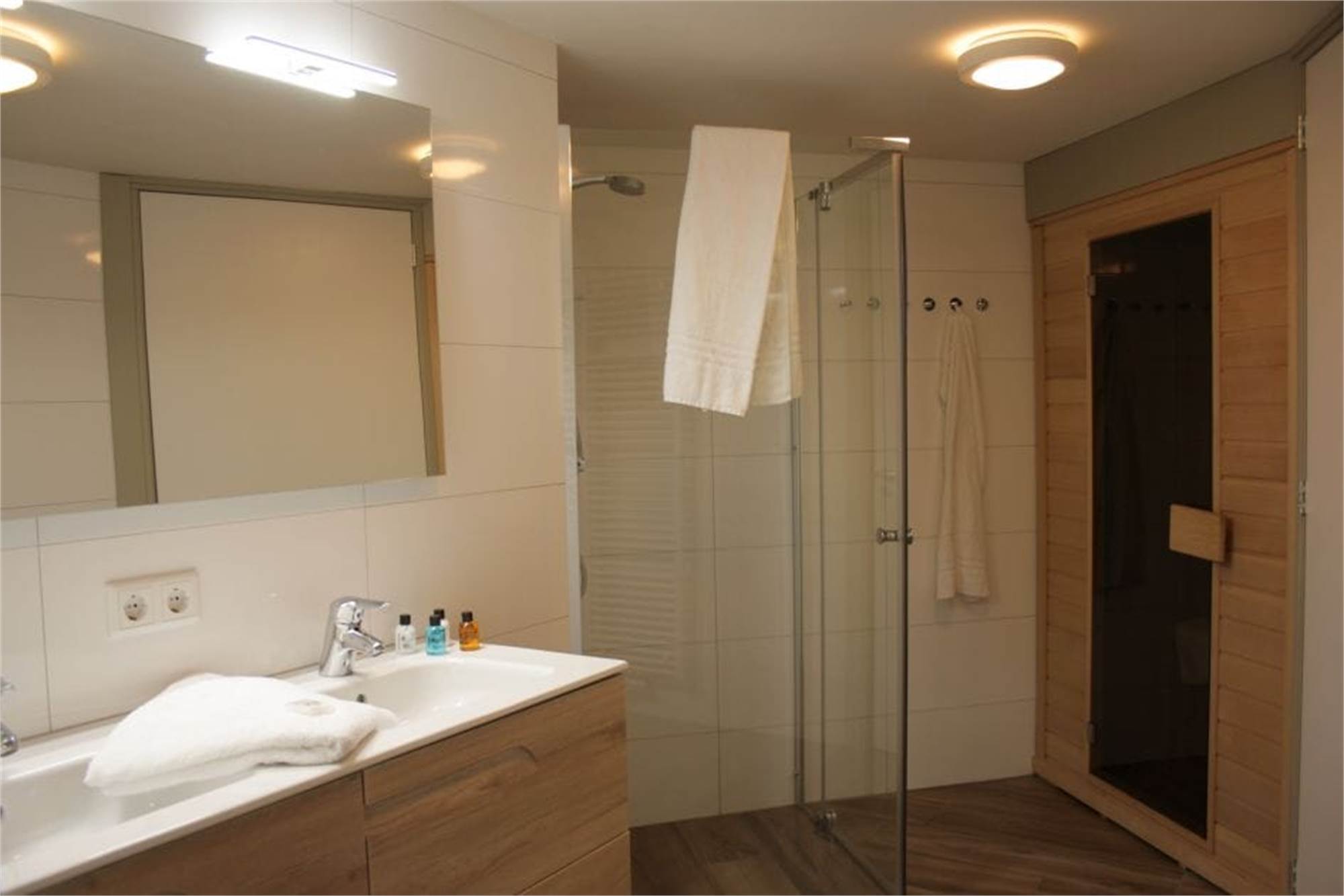 Dieser freistehende und restylte Bungalow eignet sich für 8 Personen. Im gemütlichen Wohnzimmer finden Sie ein TV-Gerät und die Küche ist u. a. mit Geschirrspüler, Kombi-Mikrowelle und Kaffeemaschine ausgestattet. Es gibt insgesamt 4 Schlafzimmer und 3 Badezimmer. Im Obergeschoss befinden sich ein Schlafzimmer mit 2 Einzelbetten und ein Badezimmer mit Dusche und Toilette. Im Untergeschoss finden Sie 3 Schlafzimmer mit je 2 Einzelbetten. Eines der Schlafzimmer verfügt über ein eigenes Badezimmer mit Dusche und Toilette. Es gibt ein weiteres Badezimmer mit Dusche und Infrarotsauna sowie ein separates Gäste-WC. Im Außenbereich finden Sie einen schönen Garten mit möblierter Terrasse sowie eine Ladestation für elektrische Fahrräder. Die Nutzung von WiFi ist gratis.