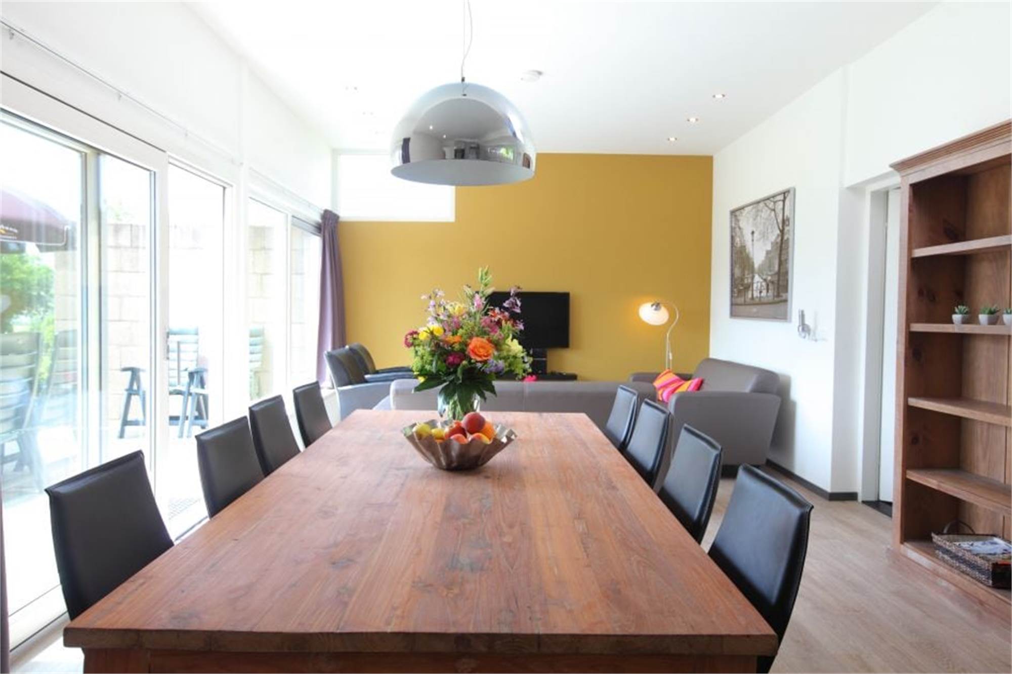 Einteilung: Wohnzimmer mit Flatscreen-TV, DVD-Player und Hifi-Anlage. Offene Küche mit Kühlschrank, Geschirrspüler, Kombi-Mikrowelle und Kaffeemaschine. Vier Schlafzimmer mit je zwei Einzel-Boxspringbetten und mind. ein Schlafzimmer mit zusätzlichem TV-Gerät. Zwei Badezimmer mit Dusche. Zwei separate Toiletten. Abstellraum mit Ladestation für Elektro-Fahrräder.