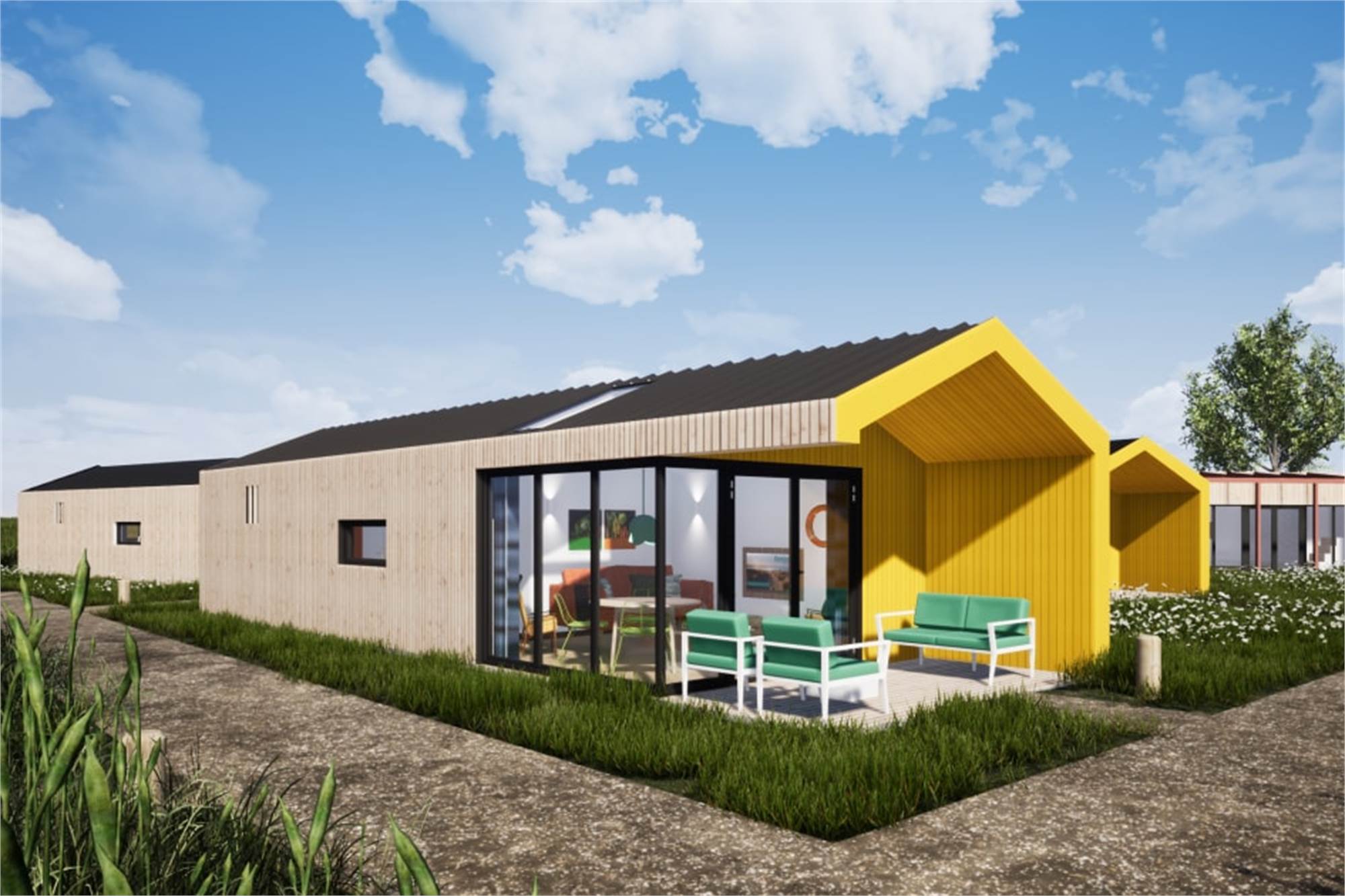 Diese freistehende Lodge ist für 4 Personen geeignet. Im Wohnzimmer befindet sich eine Sitzecke, eine Essecke und ein Smart-TV. Die Küche ist mit einem Geschirrspüler, Kühlschrank mit Gefrierfach, einer Mikrowelle, Kaffeemaschine und Wasserkocher ausgestattet. Es sind 2 Schlafzimmer mit jeweils 2 Einzelbetten vorhanden. Im Schlafzimmer ist Platz für ein extra Kinderbett. Das Badezimmer verfügt über eine Waschbecken und eine begehbare Dusche. Es ist ein separates WC vorhanden. Die Lodge verfügt über einen Garten mit einer Veranda und einem Loungeset. Die gesamte Lodge ist mit Fußbodenheizung versehen und verfügt über kostenloses WiFi.
