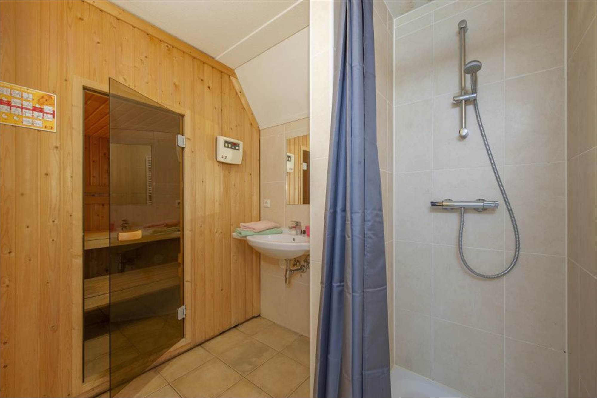 Diese freistehende Familienvilla ist kinderfreundlich eingerichtet und eignet sich für 14 Personen. Das Wohnzimmer verfügt über eine große Sitzecke mit TV-Gerät und DVD-Player, einen Essbereich und Fußbodenheizung. Die Küche ist mit Kombi-Mikrowelle, Geschirrspüler, Kühl-/Gefrierkombination, Kaffeemaschine und Backofen ausgestattet. Es gibt 8 Schlafzimmer mit je 2 Einzel-Boxspringbetten, 2 davon im Erdgeschoss. Im Erdgeschoss befinden sich außerdem 2 Badezimmer mit Dusche und 2 separate Toiletten. Im ersten Obergeschoss finden Sie 4 Schlafzimmer sowie 3 Badezimmer, zwei davon mit Dusche und eins mit Badewanne und traditioneller Sauna. Im zweiten Obergeschoss finden Sie 2 Schlafzimmer mit Einzelbett. Die Villa hat außerdem folgende kinderfreundliche Ausstattung: 2 Kinderbettchen, 2 Kinderstühle, Treppengitter und kindersichere Steckdosen. Es gibt eine möblierte Terrasse und Parkmöglichkeiten in der Nähe der Unterkunft. Die Nutzung von WiFi ist gratis.