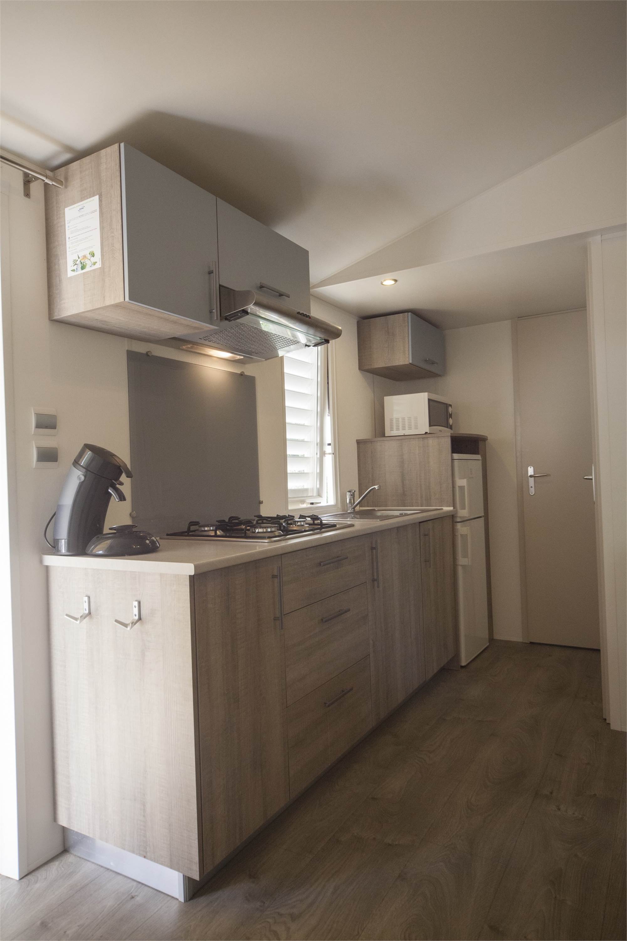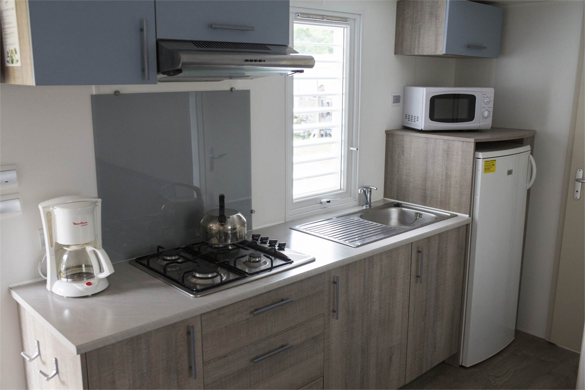 Ausstattungsmerkmale Extérieur Terrassenmöbel Holzterrasse Veranda Grill Audio/Video/Elektronik Internet WIFI im Park InternetWIFI in der Unterkunft Küche Kaffeemaschine Kühlschrank mit Gefrierfach Moderne offene Küche 4-flammiger Gasherd Mikrowellenherd Schlafen Deckbetten Zimmer mit 2 Einzelbetten Zimmer mit einem Doppelbett Anzahl Schlafzimmer: 2 Sanitäranlagen Dusche Separate Toilette Duschkabine Badezimmer im Erdgeschoss Waschbecken im Badezimmer Sondermerkmale Haustiere gestattet Rauchfrei