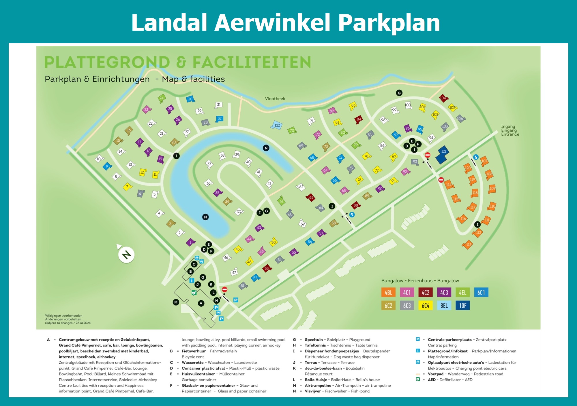 Aktueller und übersichtlicher Parkplan von Landal Aerwinkel mit alle Unterkünfte und Einrichtungen, auch als PDF herunterladbar.