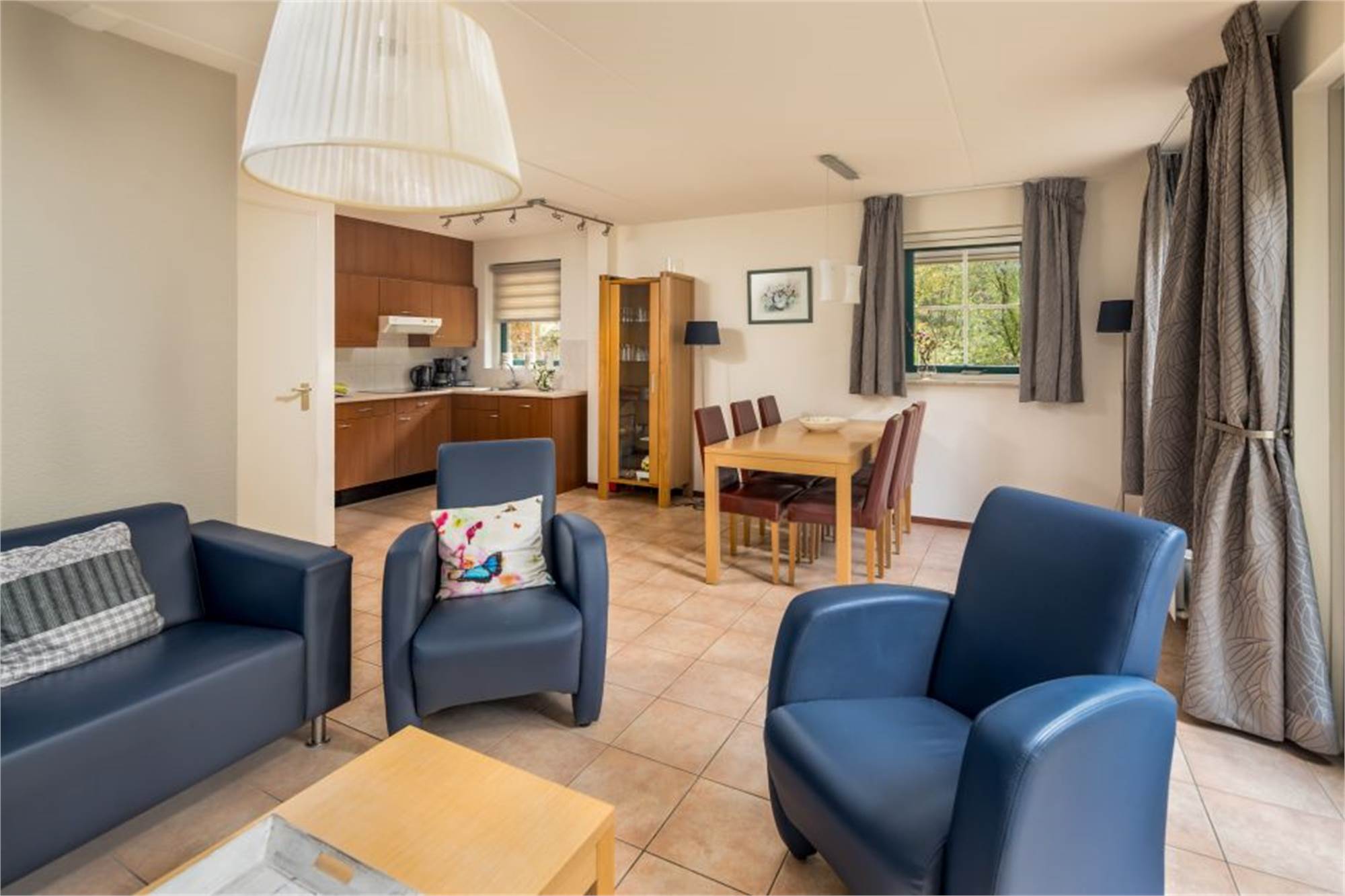 Einteilung: Wohnzimmer mit offener Küche und Flügeltüren zur großen, möblierten Terrasse. Separate Toilette oder Toilette im Badezimmer. Drei Schlafzimmer mit je zwei Schlafplätzen; eins davon befindet sich im Erdgeschoss. Ihnen stehen zwei Badezimmer zur Verfügung. Einige Bungalows haben eine (Infrarot) Sauna (siehe Aufpreis).