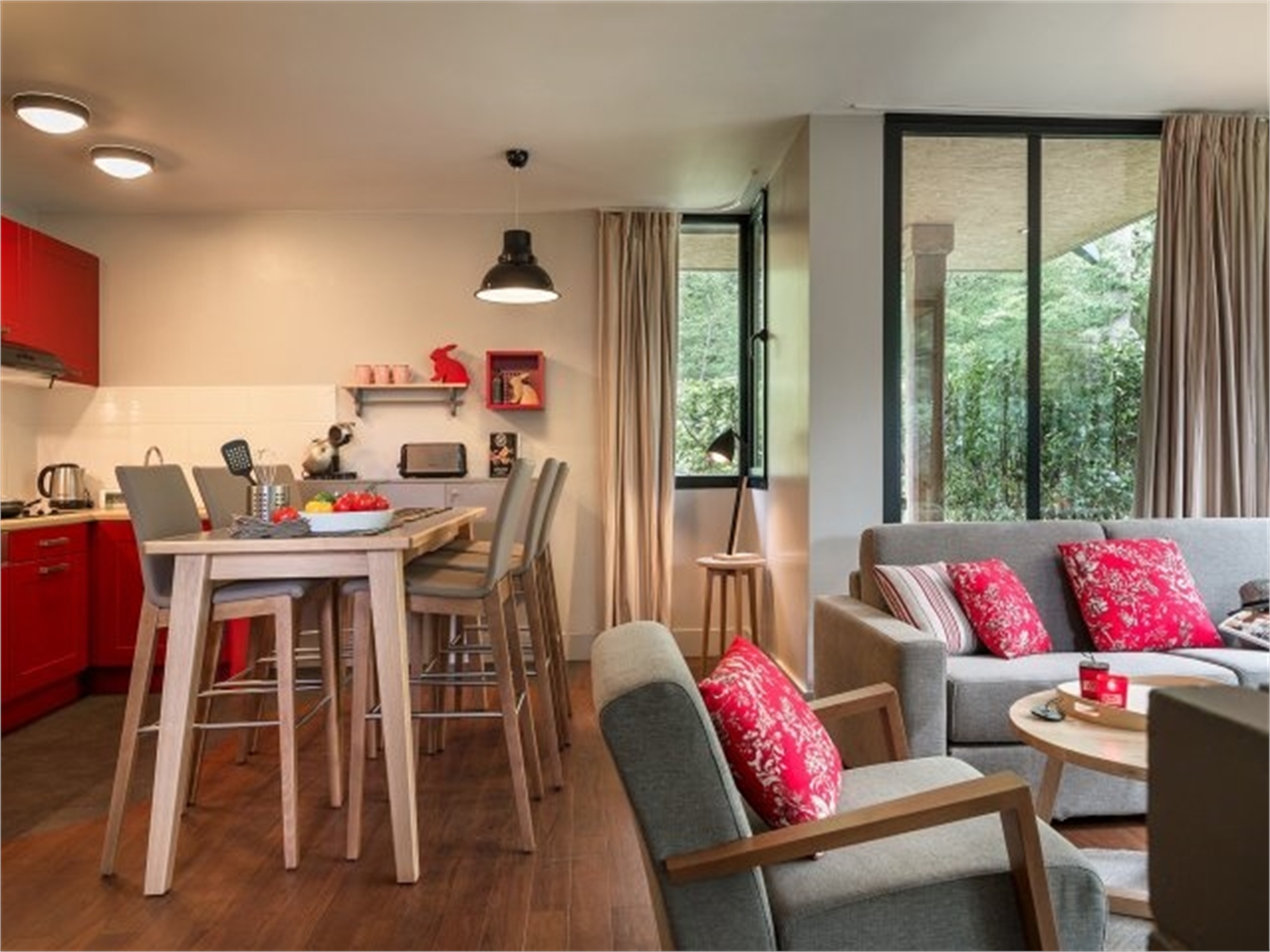 Der Name ist Programm: Die Architektur des Pagode-Ferienhauses mit seinem Doppel-Dach wirkt orientalisch. Vom Boden bis zur Decke ist alles offen und hell und die großen Fenster bieten Ihnen wunderbare Ausblicke auf die umgebende freie Natur.