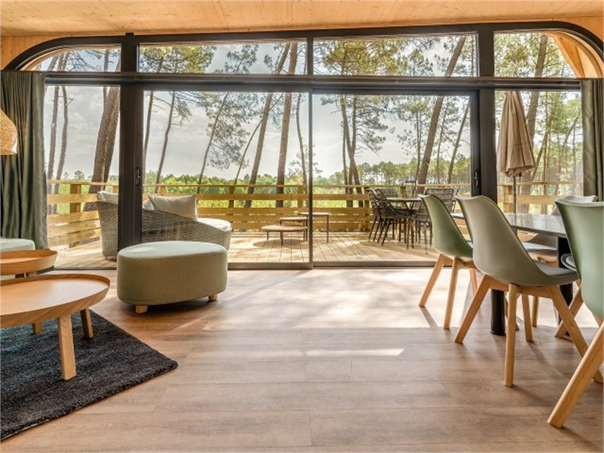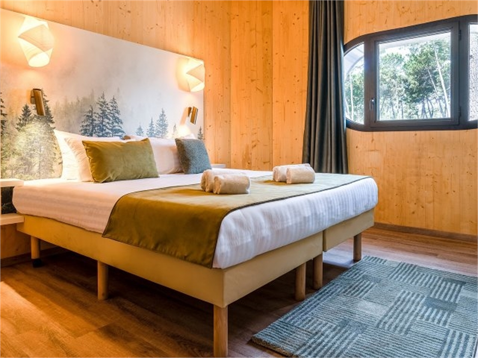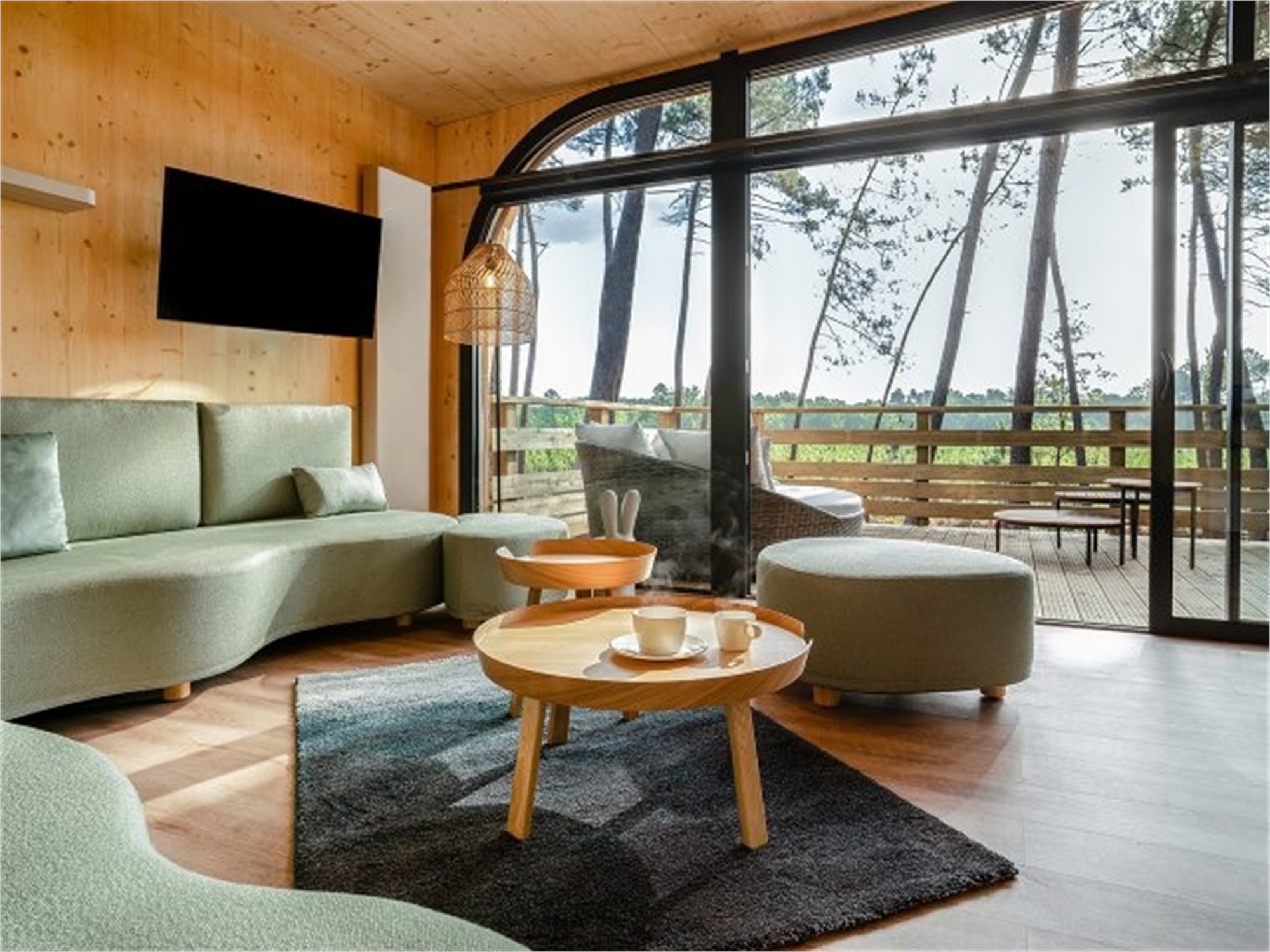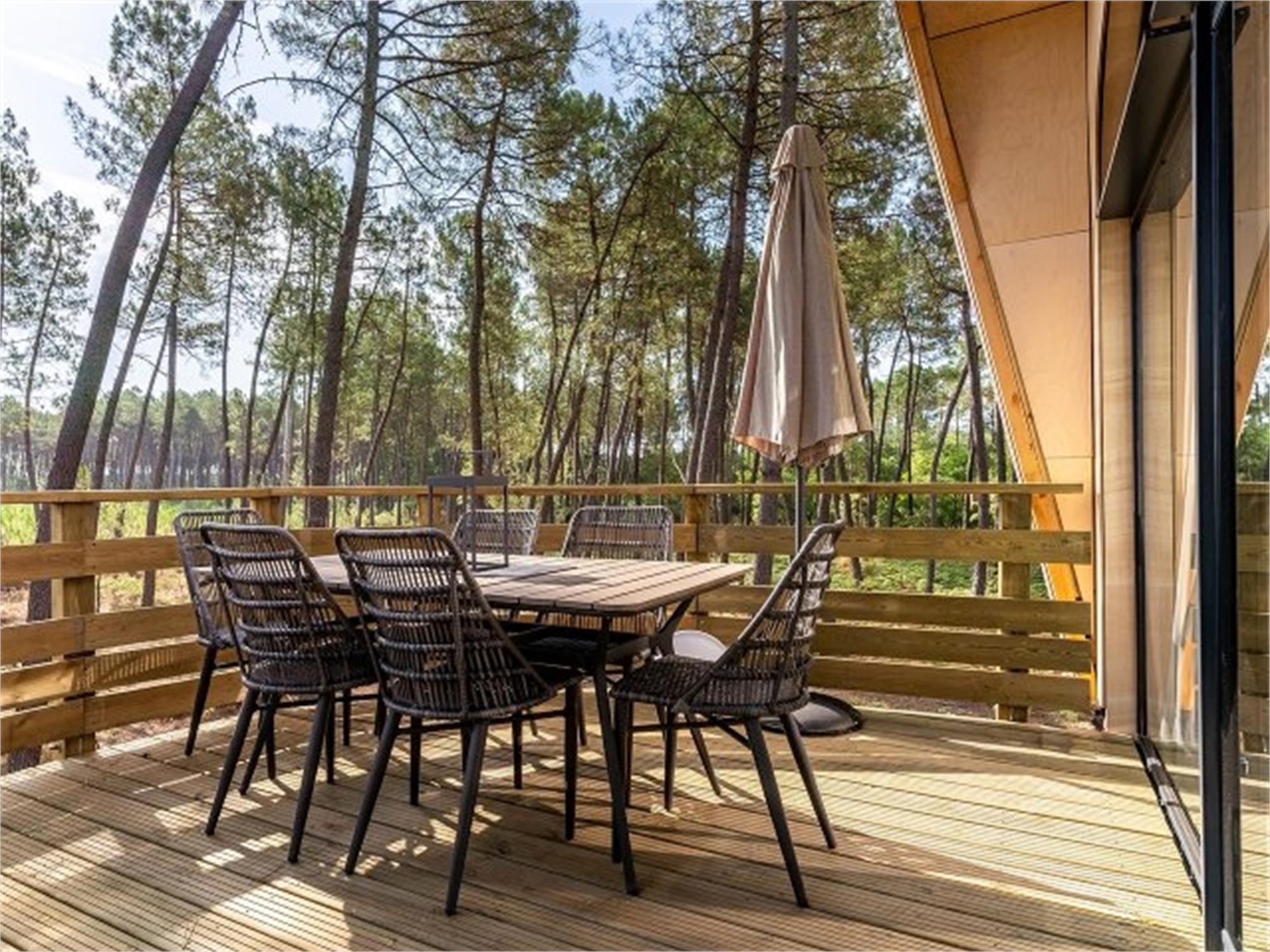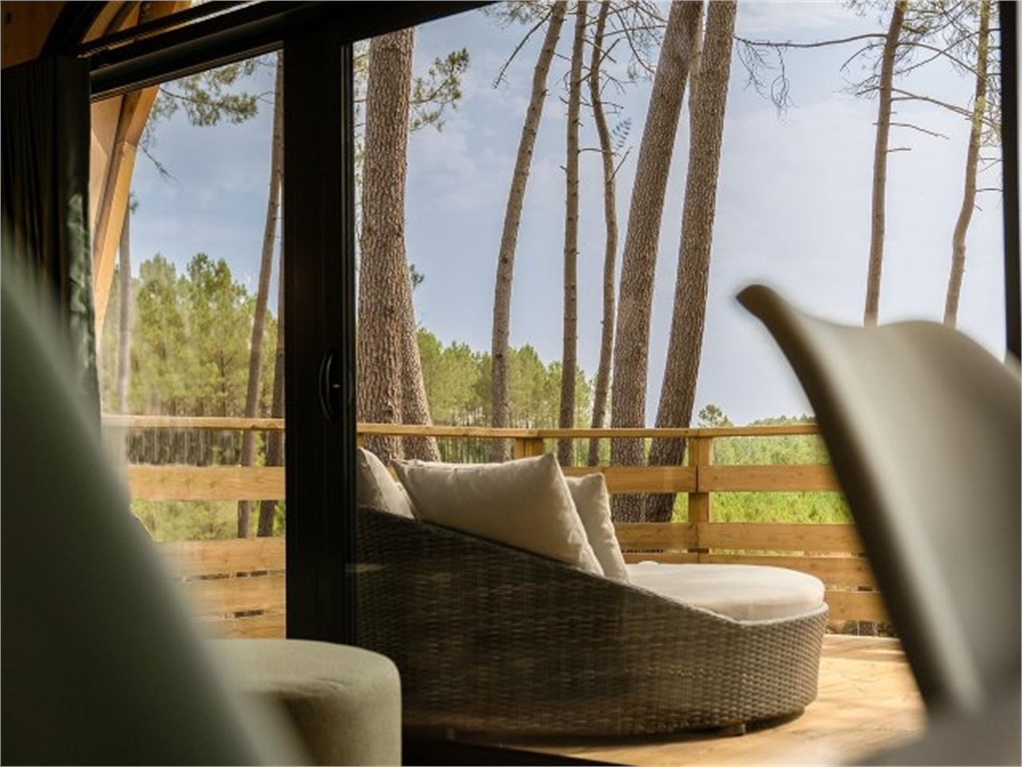 Genießt die atemberaubende Aussicht von der Terrasse eures eigenen Baumhauses.