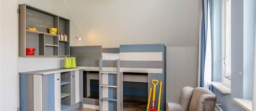 • Kinderspiel-/schlafzimmer mit einem Hochbett und einem Boxspring-Einzelbett auf der ersten Etage