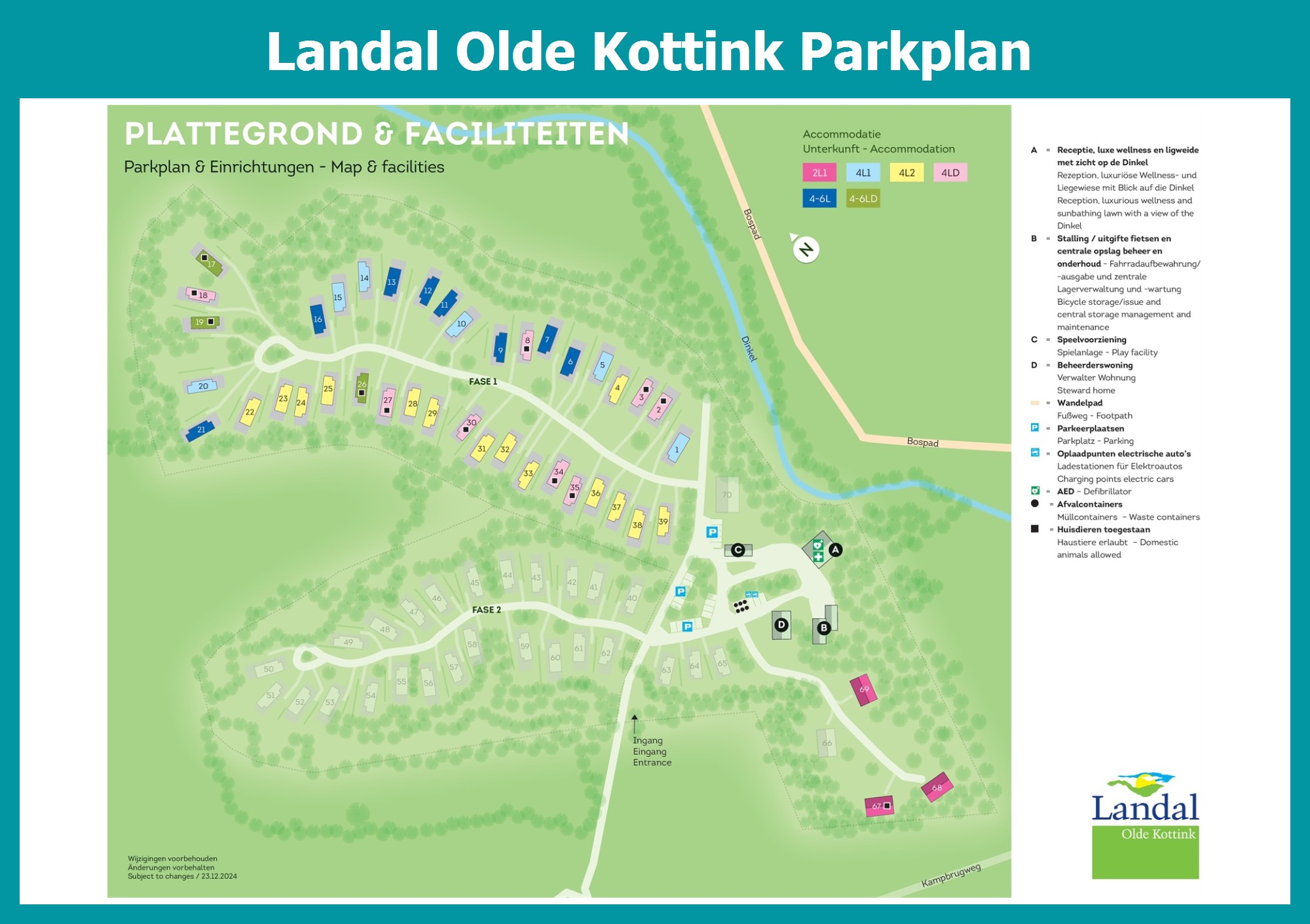 Aktueller und übersichtlicher Parkplan von Landal Olde Kottink mit alle Unterkünfte und Einrichtungen, auch als PDF herunterladbar.