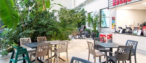 Gönn dir eine Pause im Rocket's on Beach im Aqua Mundo: Burger, Snacks, Salate & Eis - alles inmitten der tropischen Wasserparadies-Atmosphäre!