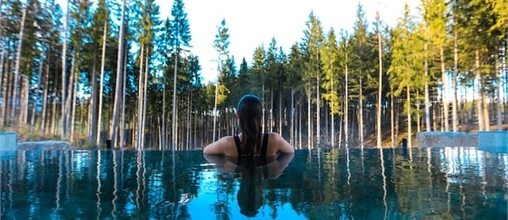 Entspanne dich im Überlauf-Salzwasserpool des Wellnessbereichs und genieße die atemberaubende Aussicht auf den Allgäuer Wald. Dieses Element ist Teil des Spa-Zugangspakets. Für Buchungen wende dich an die Rezeption des Deep Nature Spa.