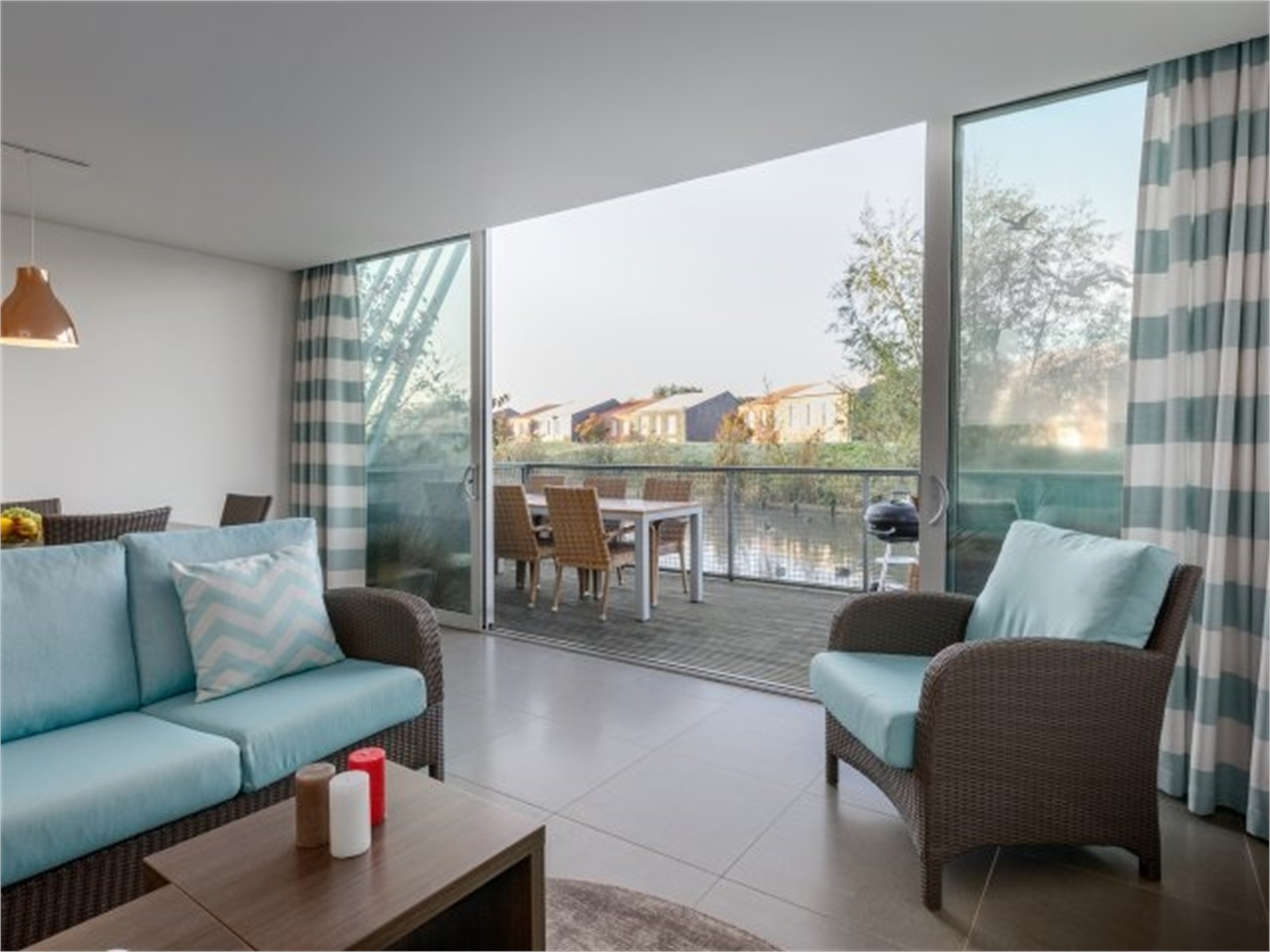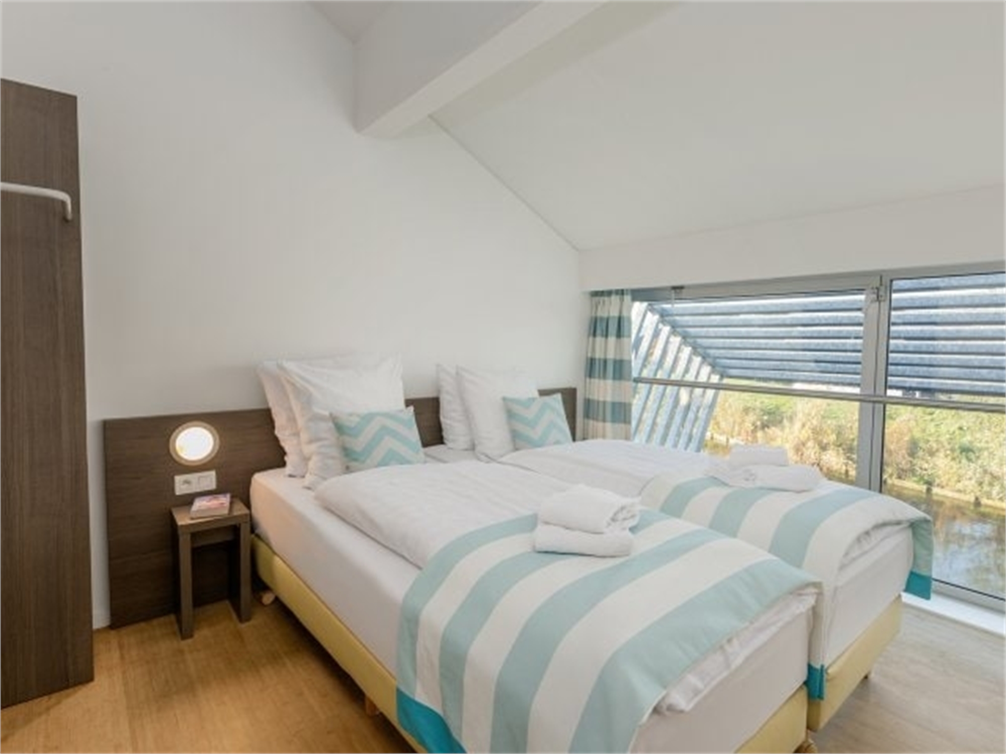 Von Ihrer überdachten Privatterrasse schweift Ihr Blick über den See. Alle Häuser des Typs Ferienhaus am See liegen direkt am Wasser. Das Panorama genießen Sie auch von innen durch die großen Fenster!