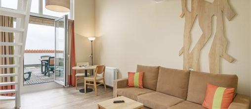 Großzügige Hotelsuite mit komfortablem Wohnbereich und eleganter Einrichtung.