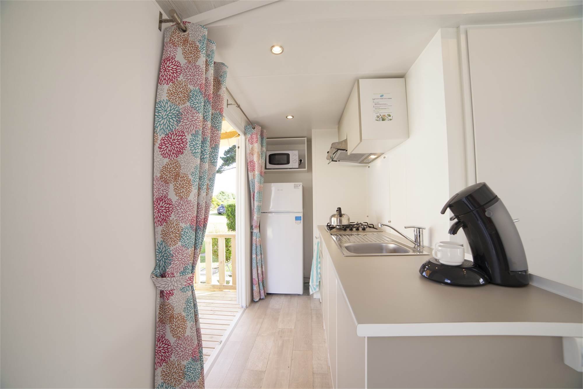 Ausstattungsmerkmale Essecke für 4 Personen Doppelterrassentüren Gasheizofen Extérieur Terrassenmöbel Parken bei der Unterkunft Holzterrasse Veranda Liegebetten Terrassenheizung Audio/Video/Elektronik Internet WIFI im Park Flatscreen Fernseher Küche Wasserkocher Kühlschrank mit Gefrierfach Moderne offene Küche 4-flammiger Gasherd Senseo Kaffeemaschine Mikrowellenherd Schlafen Deckbetten Zimmer mit 2 Einzelbetten Zimmer mit einem Doppelbett Anzahl Schlafzimmer: 2 Sanitäranlagen Duschkabine Großes Waschbecken Sondermerkmale
