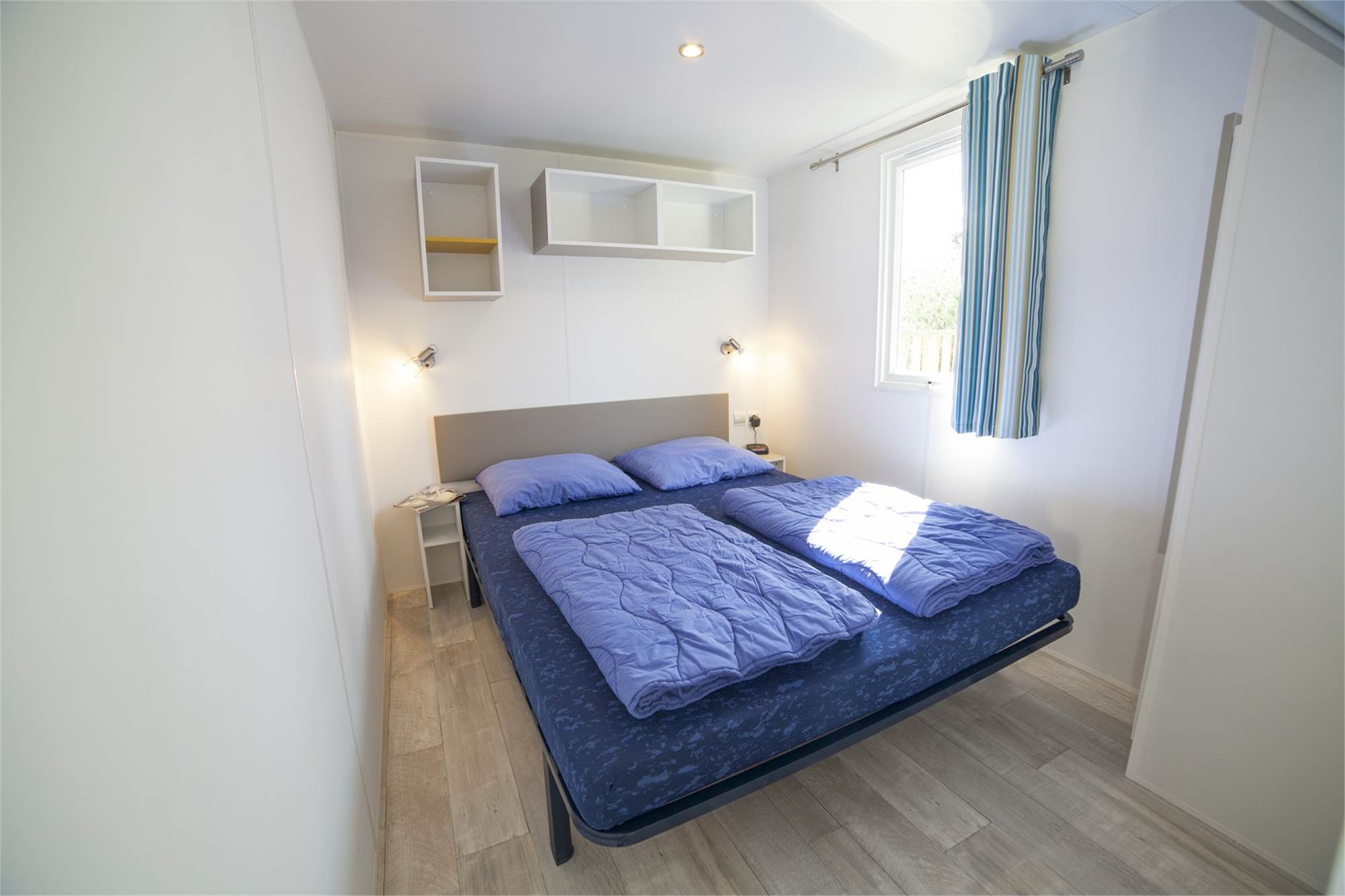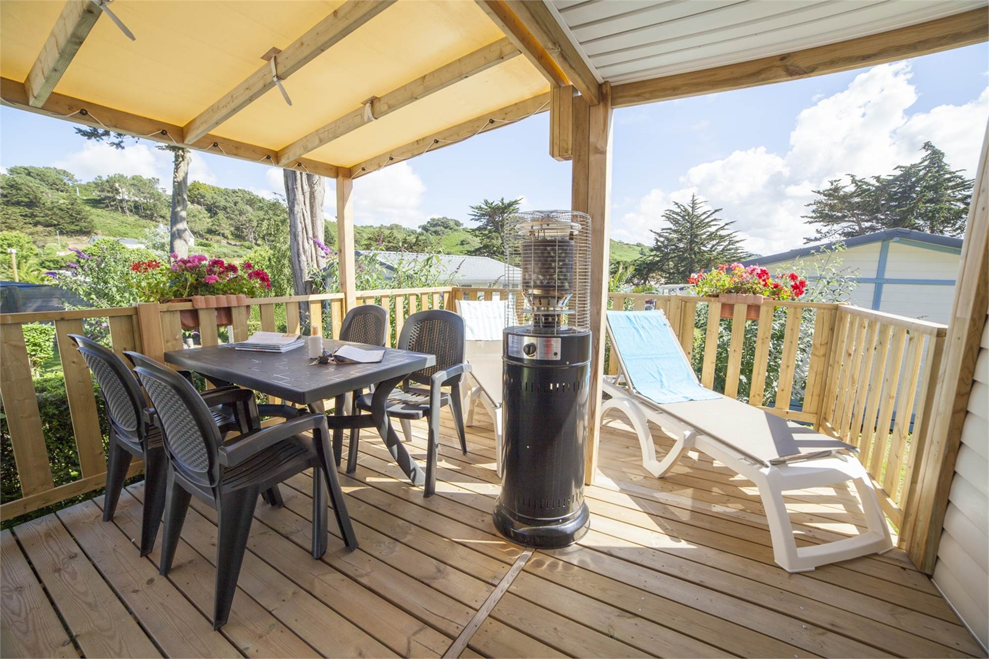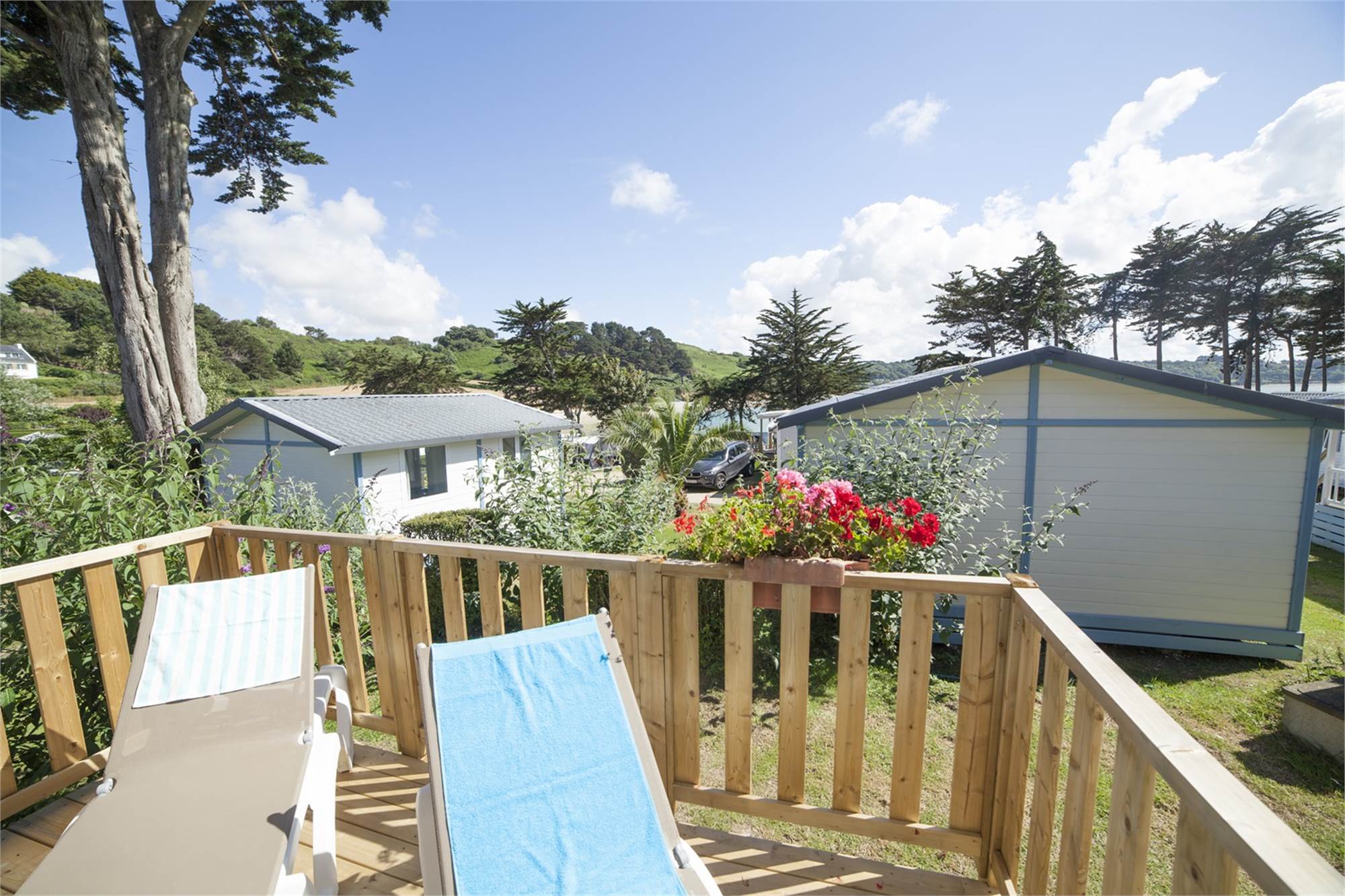 Algemein/lage Freistehend Aussicht auf See/Meer Ausstattungsmerkmale Wohnzimmer mit Terrassentüren Essecke für 4 Personen Elektroofen Extérieur Terrassenmöbel Holzterrasse Veranda Liegebetten Terrassenheizung Audio/Video/Elektronik Fernseher Internet WIFI im Park Flatscreen Fernseher Küche Offene Küche Basis Wasserkocher Abzugshaube 4-flammiger Gasherd Große Kühl-/Gefrierkombination Senseo Kaffeemaschine Mikrowellenherd Schlafen Deckbetten Zimmer mit 2 Einzelbetten Zimmer mit einem Doppelbett Anzahl Schlafzimmer: 2 Sanitäranlagen Dusche Separate Toilette Duschkabine Waschbecken im Badezimmer Thermostathähne Sondermerkmale Haustiere gestattet Rauchfrei