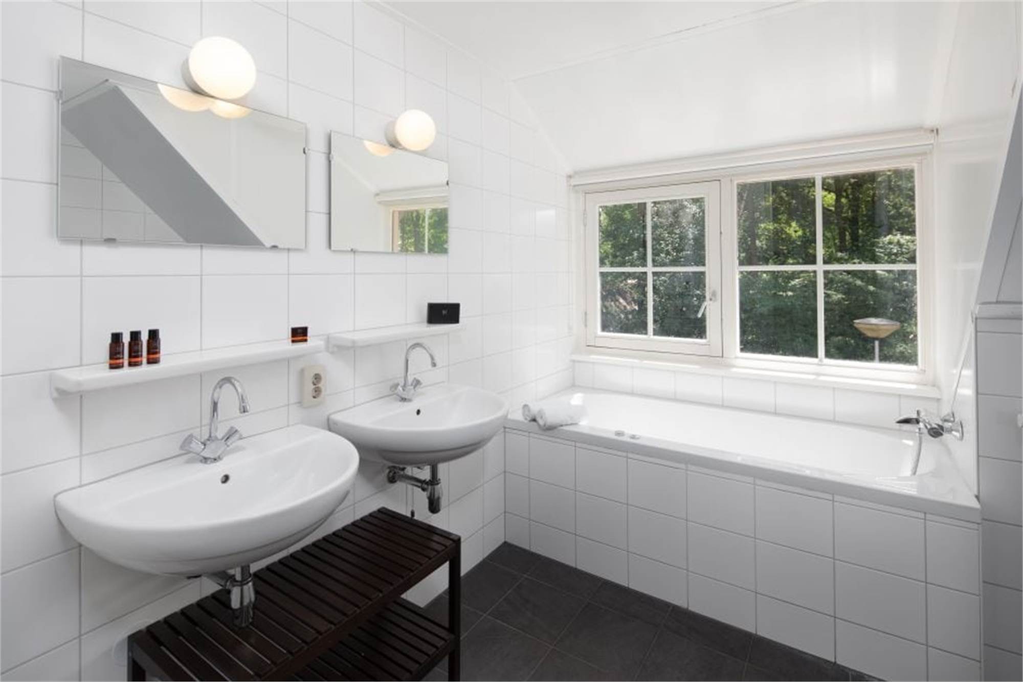 Obergeschoss: vier Schlafzimmer mit je zwei Einzel-Boxspringbetten. Zwei Badezimmer, davon eins mit (Regen)Dusche, Whirlpool und zwei Waschtischen und eins mit (Regen)Dusche, (behindertengerechter) Toilette und zwei Waschtischen. Separate Toilette. Traditionelle Sauna für sechs Personen.