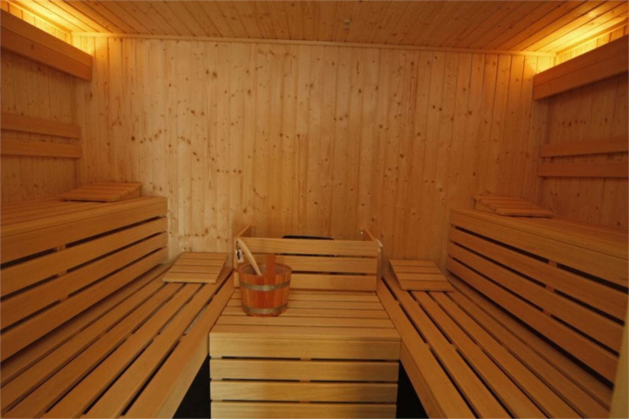 Eigener Saunagarten: schöner separater und abschließbarer Saunagarten mit Holzgebäude, ausgestattet mit einem großen Sauna- und Relaxbereich. Überdachter Außenbereich mit Gartenmöbeln für 12 Personen und Jacuzzi.