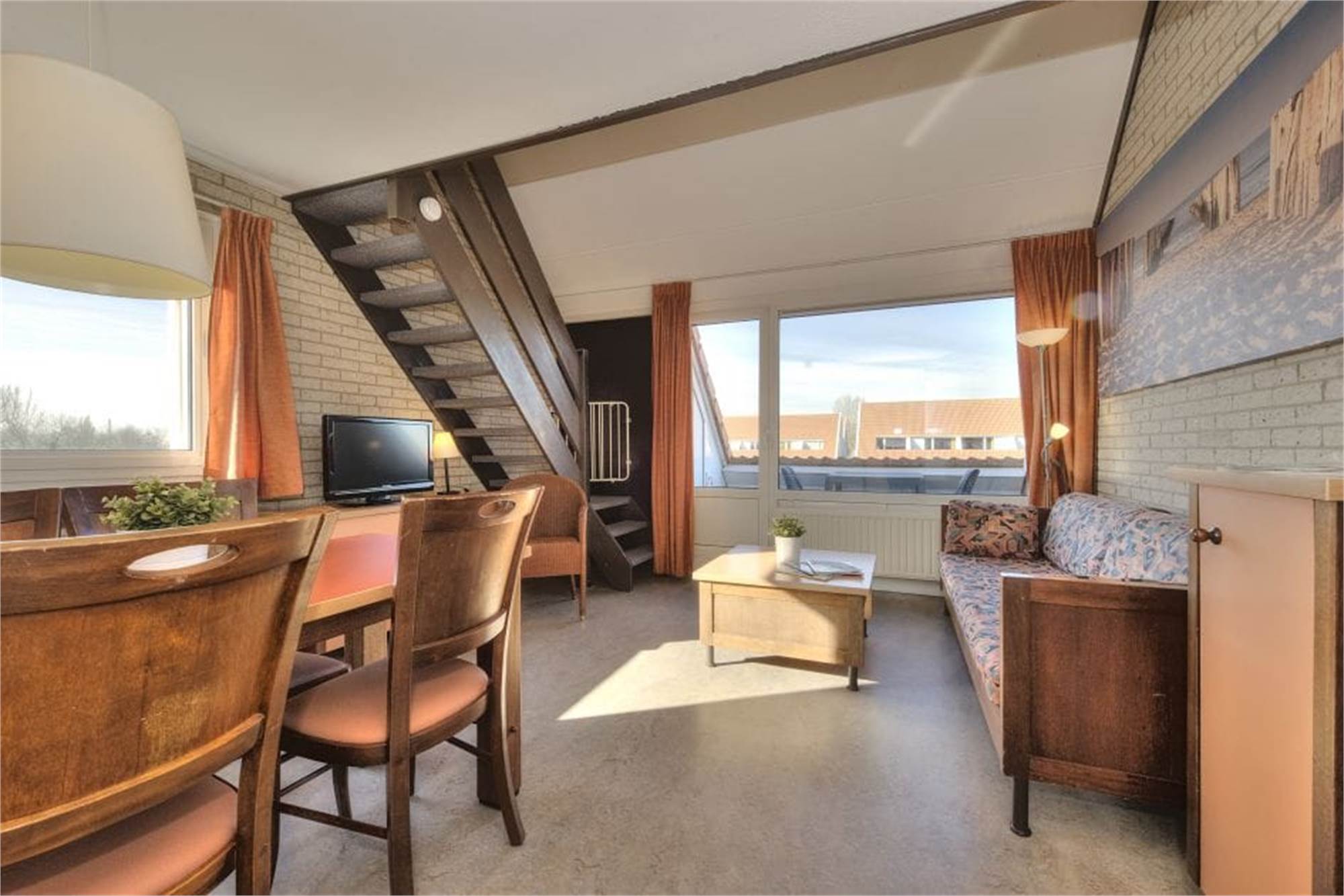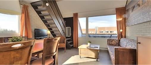 Dieses Appartement eignet sich für 2 Erwachsene und ein Kind (bis 4 Jahre). Das Wohnzimmer ist eingerichtet mit einer Schlafcouch für eine Person sowie einem Balkon. Es gibt eine separate Küche mit Mikrowelle, Kühlschrank mit Gefrierfach und Geschirrspüler. Badezimmer mit Dusche, Waschtisch und Toilette. Im Obergeschoss befinden sich ein Schlafzimmer mit zwei Einzel-Boxspringbetten. Möblierter Balkon.