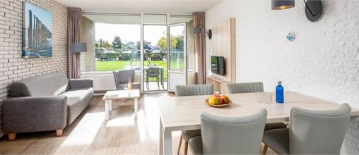 Dieses restylte Appartement eignet sich für 4 Personen + ein Kind und bietet ein Wohnzimmer mit Sitzecke und Smart-TV sowie eine Küche mit u. a. Kühlschrank mit Gefrierfach, Kaffeepadmaschine, Geschirrspüler und Kombi-Mikrowelle. Über eine Treppe im Wohnzimmer gelangen Sie in die offene Galerie mit drei Schlafzimmern. Ein Schlafzimmer ist mit 2 Einzel-Boxspringbetten ausgestattet und ein Schlaffzimmer mit Etagenbett. Im dritten Schlafzimmer befindet sich ein Kinderbett. Es gibt ein Badezimmer mit begehbarer Dusche und Toilette. Vom Wohnzimmer gelangen Sie auf den möblierten Balkon. Das Appartement ist besonders kinderfreundlich eingerichtet und bietet Kinderstuhl, Kinderwanne, Laufstall und Treppengitter in beiden Etagen. Es handelt sich um eine Nichtraucherunterkunft in der Nähe der zentralen Einrichtungen des Parks und die Nutzung von WiFi ist gratis. Eine Parkmöglichkeit finden Sie auf dem zentralen Parkplatz.