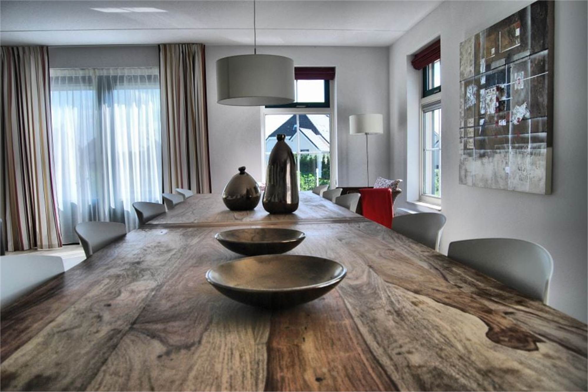 Dieser freistehende Bungalow eignet sich für 12 Personen. Das Wohnzimmer bietet einen separaten Essbereich und die Küche ist u. a. mit Geschirrspüler ausgestattet. Es gibt 5 Schlafzimmer mit je 2 oder 3 Boxspringbetten, davon eins im Erdgeschoss. Darüber hinaus finden Sie 3 Badezimmer mit Badewanne und/oder Dusche, eins davon ebenfalls im Erdgeschoss. Der Bungalow bietet außerdem eine Sauna sowie eine möblierte Terrasse und die Nutzung von WiFi ist gratis.