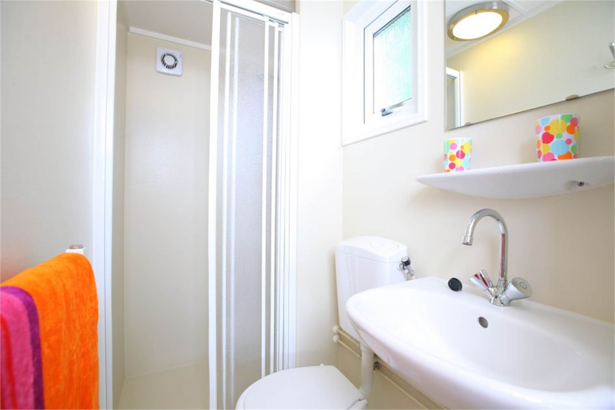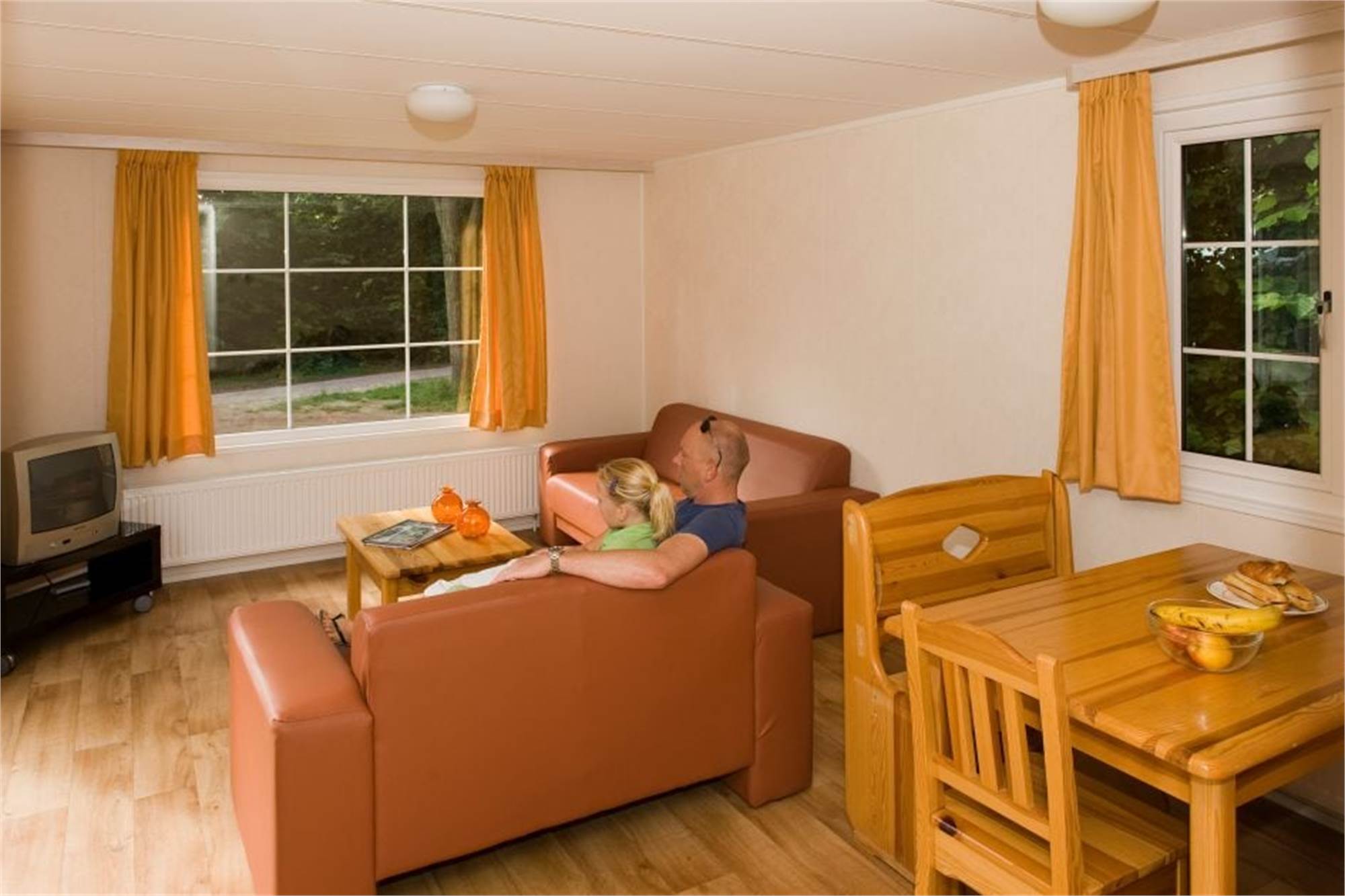Dieses freistehende Chalet eignet sich für 4 Personen. Das Wohnzimmer verfügt über eine separate Sitzecke mit TV-Gerät. In der Küche finden Sie u. a. einen Geschirrspüler, eine Mikrowelle und eine Filterkaffeemaschine. Es gibt 2 Schlafzimmer mit je 2 Einzelbetten und ein Badezimmer mit Dusche und Toilette. Das Chalet bietet außerdem eine möblierte Terrasse und die Nutzung von WiFi ist gratis.