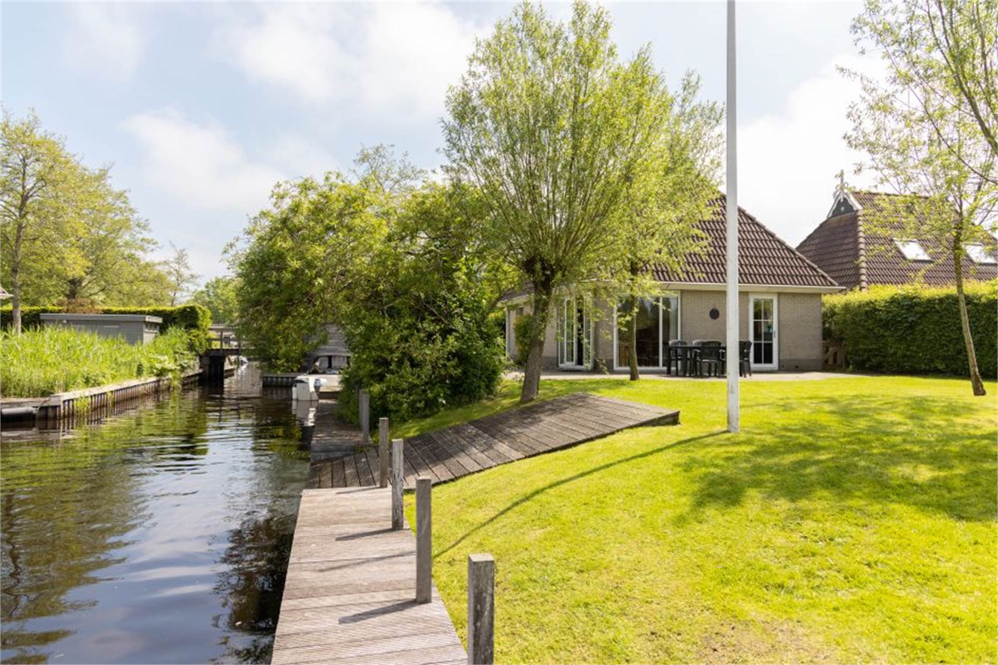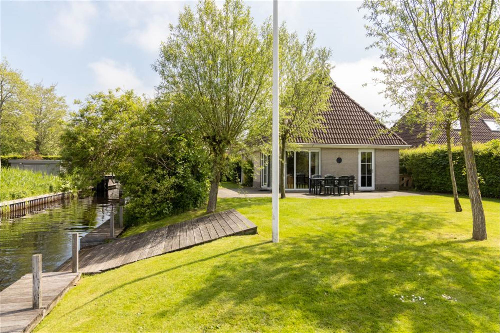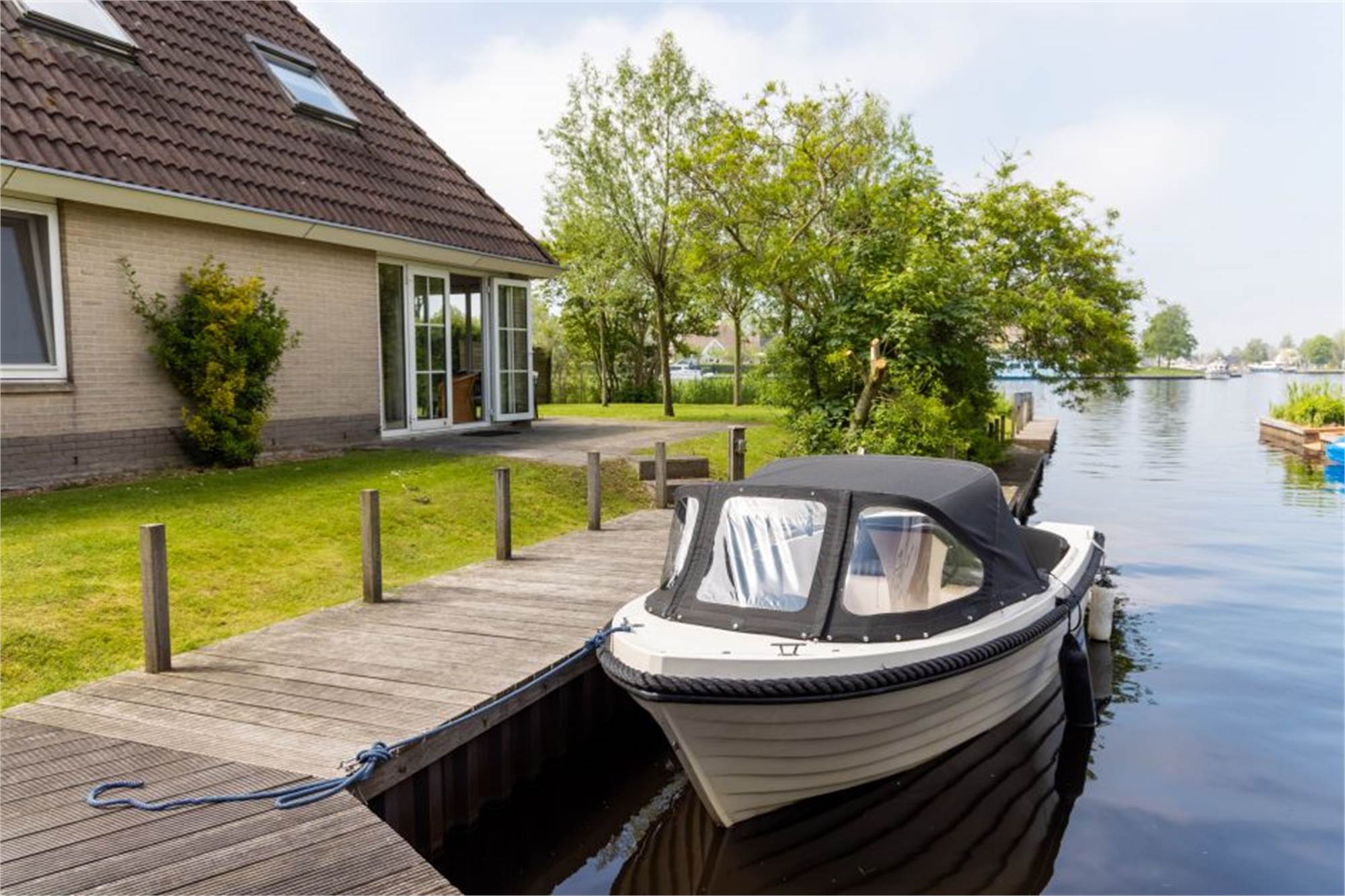 Dieser freistehende Bungalow liegt am Wasser und ist für 8 Personen geeignet. Er ist mit einem Wohnzimmer mit Fernseher ausgestattet und in der Küche finden Sie unter anderem eine Kaffeemaschine, eine Kombi-Mikrowelle sowie einen Geschirrspüler. Im Erdgeschoss befindet sich ein Badezimmer mit Dusche und Whirlpool. Im Obergeschoss befinden sich 4 Schlafzimmer, die mit 2 Einzelbetten versehen sind. Zudem befindet sich dort 1 Badezimmer mit Dusche und Toilette. Der Bungalow verfügt über einen Garten mit möblierter Terrasse, Angelplattform und einen Bootssteg. Zudem steht Ihnen ein Parkplatz für 1 Auto zur Verfügung und Sie haben die Möglichkeit der kostenlosen WiFi-Nutzung.