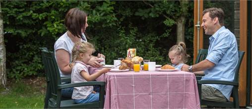 Dieses Chalet ist für vier Personen geeignet und hat ein Wohnzimmer mit Essbereich und eine offene Küche. Es gibt zwei Schlafzimmer mit Sprungfeder-Betten und das Badezimmer ist mit einer begehbaren Dusche und Toilette ausgestattet. Es gibt eine Terrasse mit Gartenmöbeln/Picknicktisch und Sie haben die Möglichkeit WiFi gratis zu nutzen.