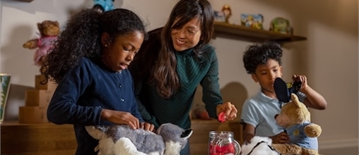 In dieser Aktivität stellen die Kinder ihr eigenes Stofftier her. Sie wählen fast alles selbst aus. Von der Figur bis zur Art der Kleidung, die das Kuscheltier trägt.