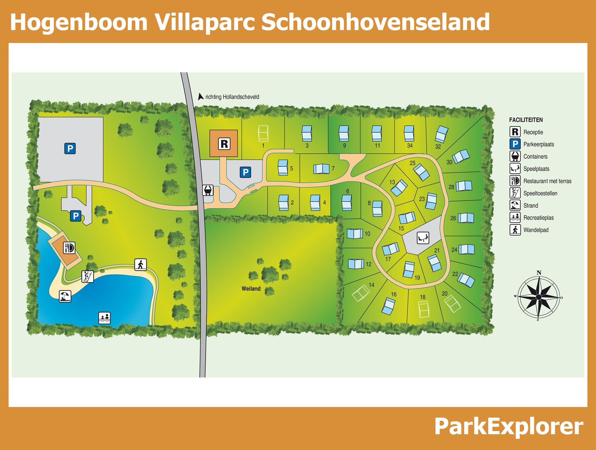 Aktueller und übersichtlicher Parkplan von Villaparc Schoonhovenseland mit alle Unterkünfte und Einrichtungen, auch als PDF herunterladbar.