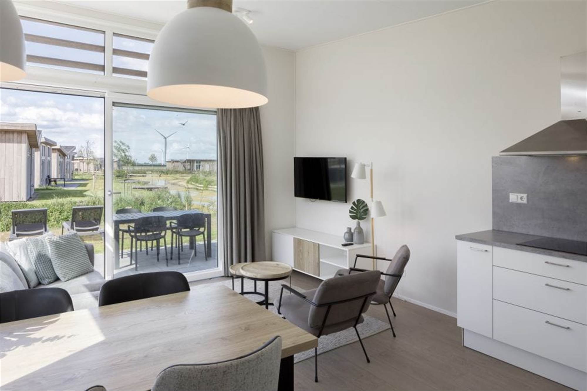 Diese freistehende Lodge liegt direkt am Wasser und eignet sich für 4 Personen. Im Wohnzimmer finden Sie eine gemütliche Sitzecke mit Smart-TV und die Küche ist u. a. mit Geschirrspüler. Kühlschrank mit Gefrierfach, Kaffeepadmaschine und Kombi-Mikrowelle ausgestattet. Es gibt 2 Schlafzimmer mit je zwei Boxspringbetten sowie 1 Badezimmer mit begehbarer Dusche. Im Wohnzimmer und in den Badezimmern befindet sich eine Fußbodenheizung. Die Nutzung von WiFi ist gratis.