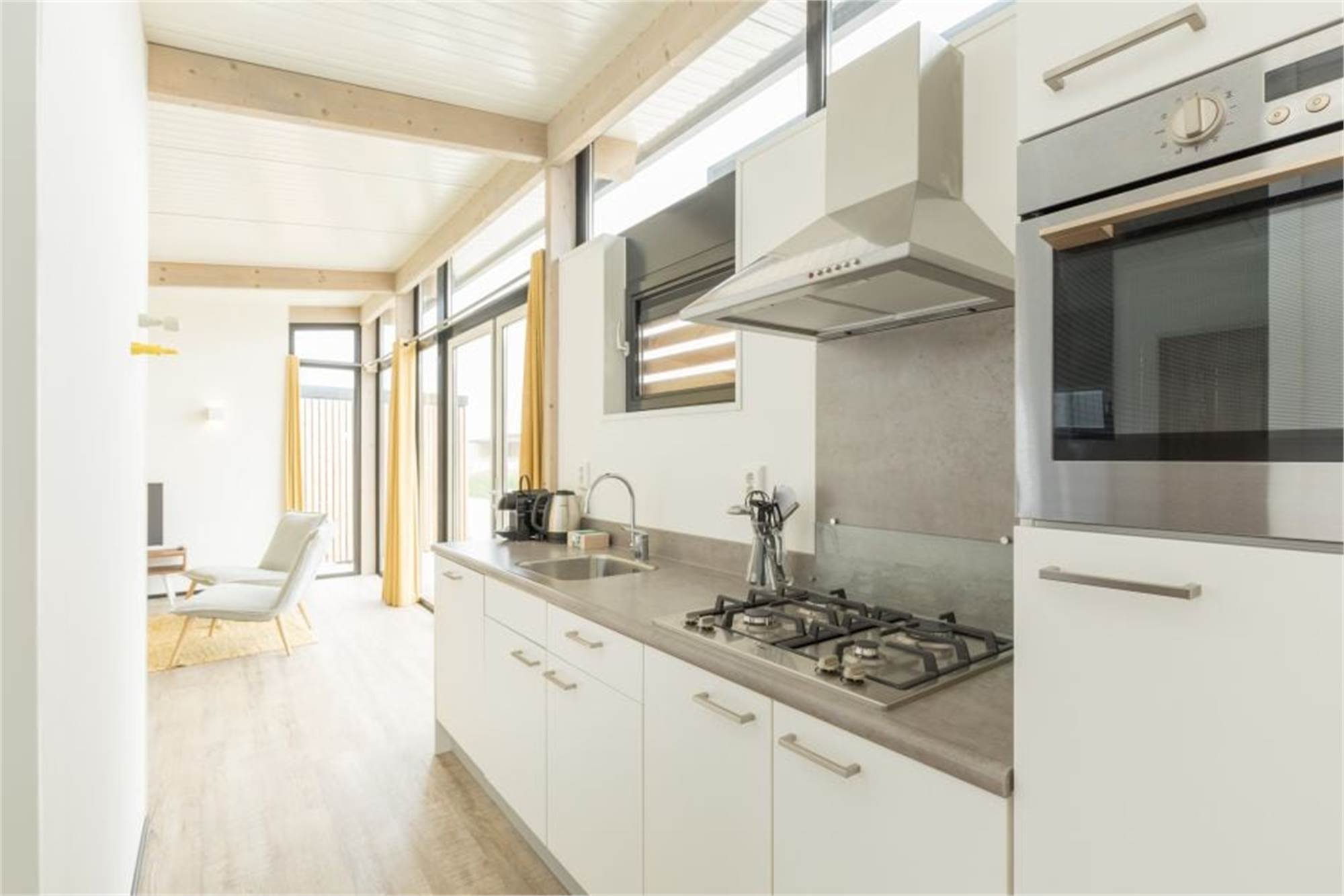 Ce lodge indépendant de plain-pied est adapté pour 4 personnes. La salle de séjour a un coin salon, une smart-TV et un coin repas. La cuisine est équipée d'un lave-vaisselle, d'un réfrigérateur avec compartiment congélateur, d'un micro-ondes, d'une machine à café et d'une bouilloire. Dans la chambre du rez-de-chaussée, il a un 2 lits simples. La salle de bains se compose d'un lavabo et d'une douche à l'italienne. Il y a également des toilettes séparées. Le lodge dispose d'un jardin avec pergola et un ensemble lounge. Tout le lodge est équipé du chauffage au sol et du wifi gratuit.