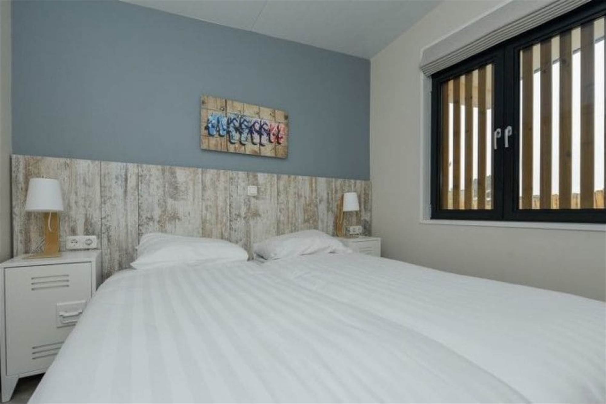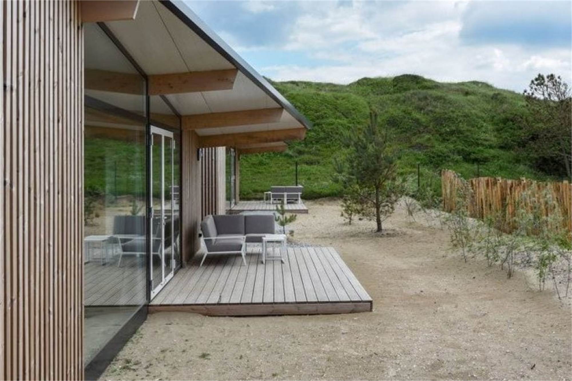 Ce lodge indépendant peut accueillir 4 personnes. La salle de séjour a un coin salon, une smart-TV et un coin repas. La cuisine est équipée d'un lave-vaisselle, d'un réfrigérateur avec compartiment congélateur, d'un micro-ondes, d'une machine à café et d'une bouilloire. Il y a 2 chambres à coucher, chacune avec 2 lits simples. Les deux chambres à coucher disposent d'une salle de bains privative avec douche et toilettes. La chambre à coucher permet d'accueillir un lit d'enfant supplémentaire. Le lodge dispose d'un jardin avec pergola et un ensemble lounge. Tout le lodge est équipé du chauffage au sol et du wifi gratuit.