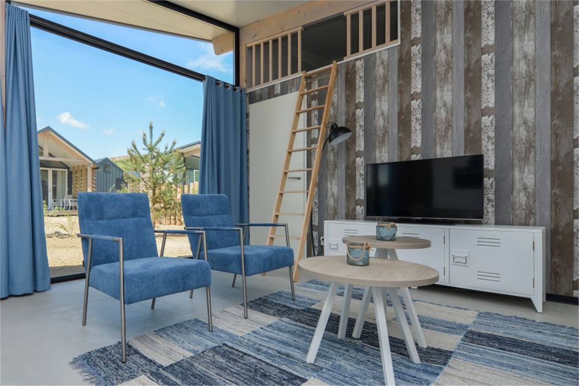 Ce lodge indépendant peut accueillir 4 personnes. La salle de séjour a un coin salon, une smart-TV et un coin repas. La cuisine est équipée d'un réfrigérateur avec compartiment congélateur, d'un micro-ondes, d'une machine à café et d'une bouilloire. Dans la chambre du rez-de-chaussée, il a un 2 lits simples. Par un escalier en bois, vous atteignez la mezzanine avec 2 autres lits simples. La salle de bains se compose de toilettes, d'un lavabo et d'une douche à l'italienne. Le lodge possède un jardin avec une pergola et des meubles de jardin. Tout le lodge est équipé du chauffage au sol et du wifi gratuit.
