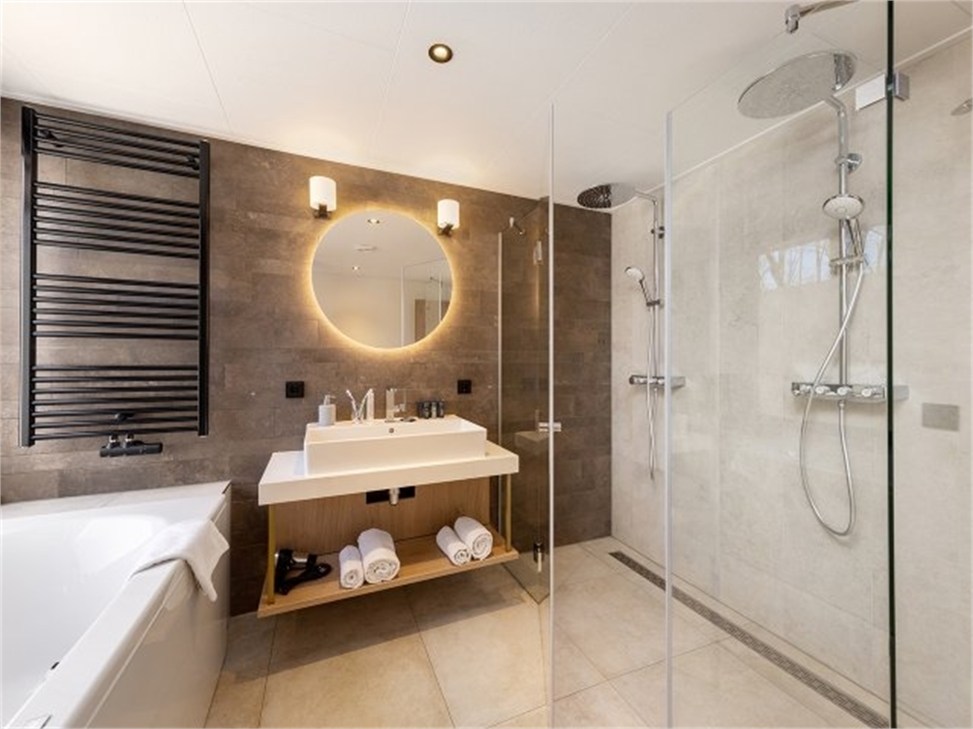 Il est temps de vous relaxer dans le Cottage Bien-être. Meublé de manière élégante et luxueuse, il dispose d'une salle de bains bien-être et d'un jacuzzi extérieur sur votre terrasse privée.