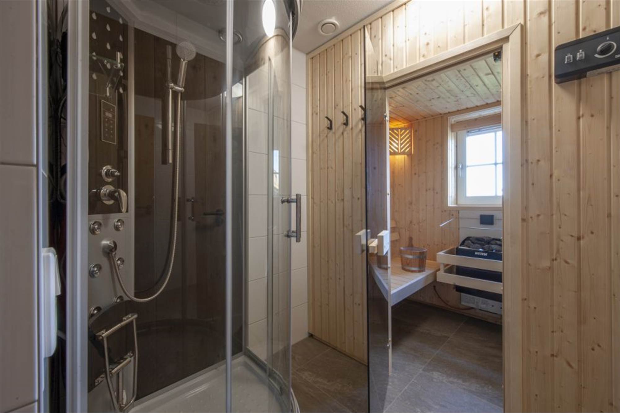 Bonus: la villa comporte un sauna et une douche à vapeur.