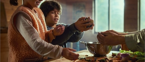 Rien de plus amusant que de préparer de bons petits plats avec d'autres enfants ! Ils préparent leurs premiers menus avec l'aide des animateurs.