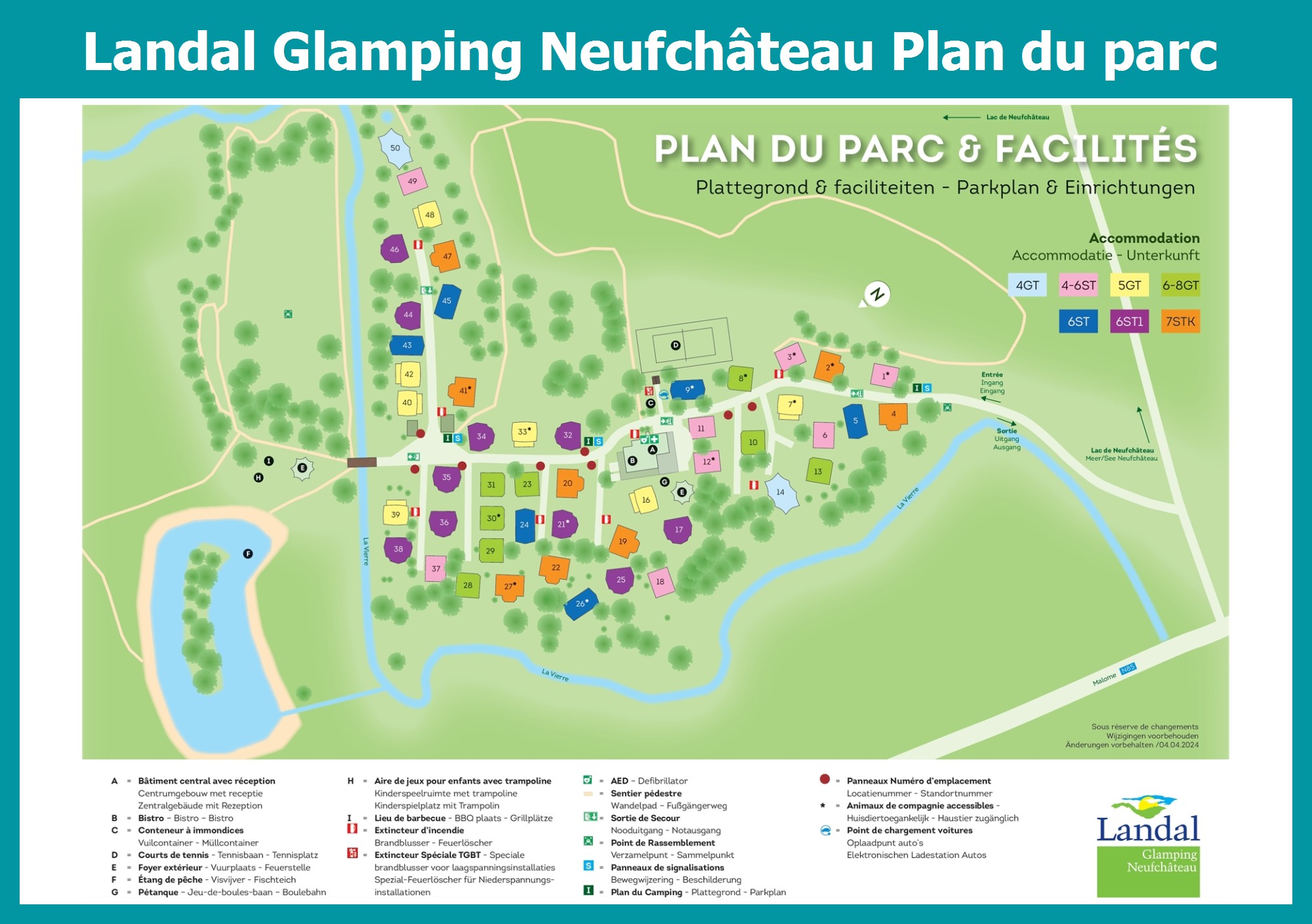 Le plan actuel du Landal Glamping Neufchâteau avec tous les hébergements et installations, est aussi disponible en pdf.