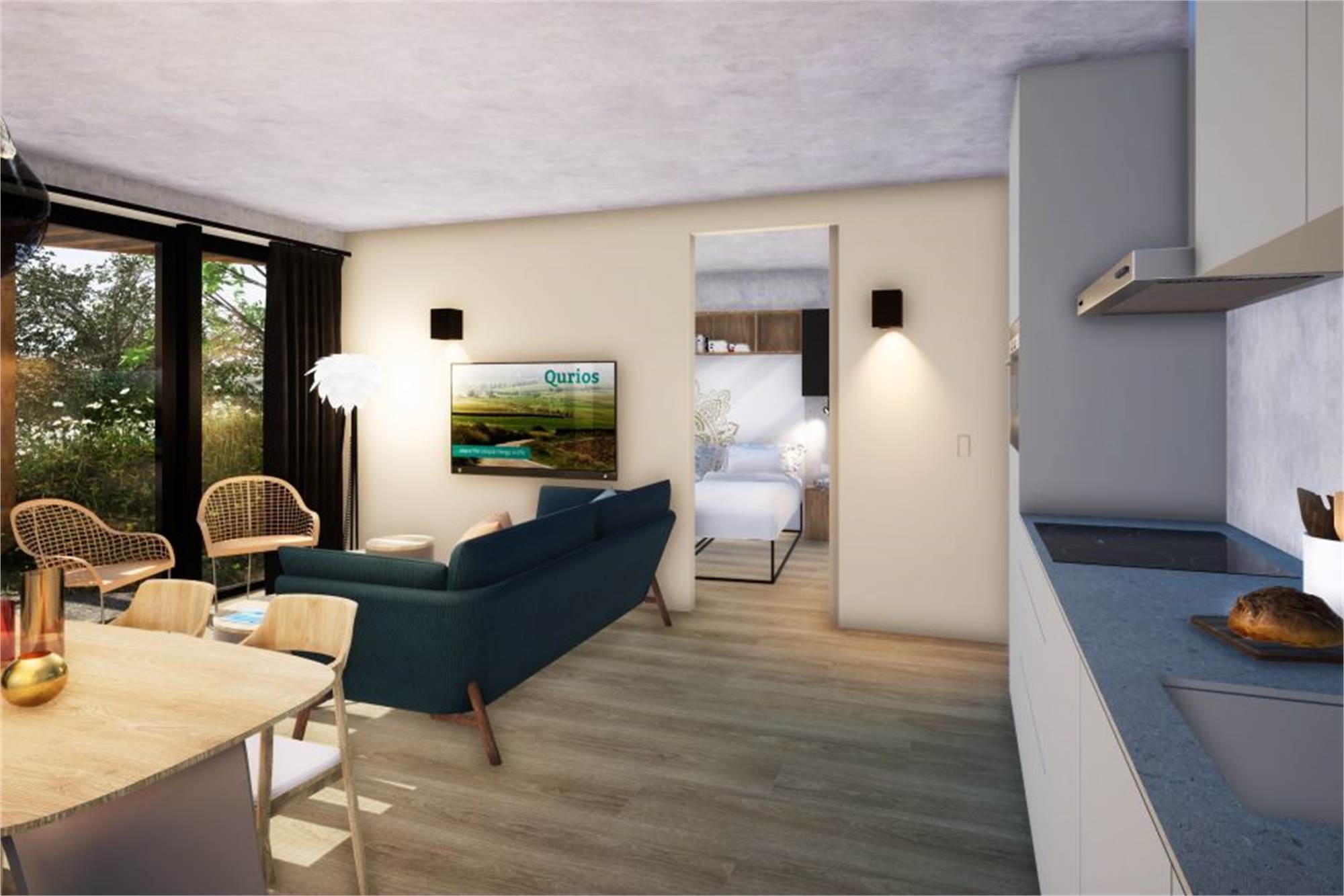 Ce cottage mitoyen de plain pied convient à 4 adultes et un bébé. Le chalet comporte une salle de séjour, un coin salon et une télévision. La cuisine ouverte est notamment équipée d'un réfrigérateur-congélateur, d'un lave-vaisselle, d'un micro-ondes combiné, d'une machine à café et d'une bouilloire électrique. Il y a 2 chambres à coucher avec chacune deux sommiers simples (extra long : 210cm). Il y a une salle de bains avec douche à l'italienne à effet de pluie. Il y a également des toilettes séparées. Le jardin comporte une terrasse partiellement couverte avec un ensemble lounge. La voiture peut être garée sur le parking central. Le wifi est à disposition gratuitement.