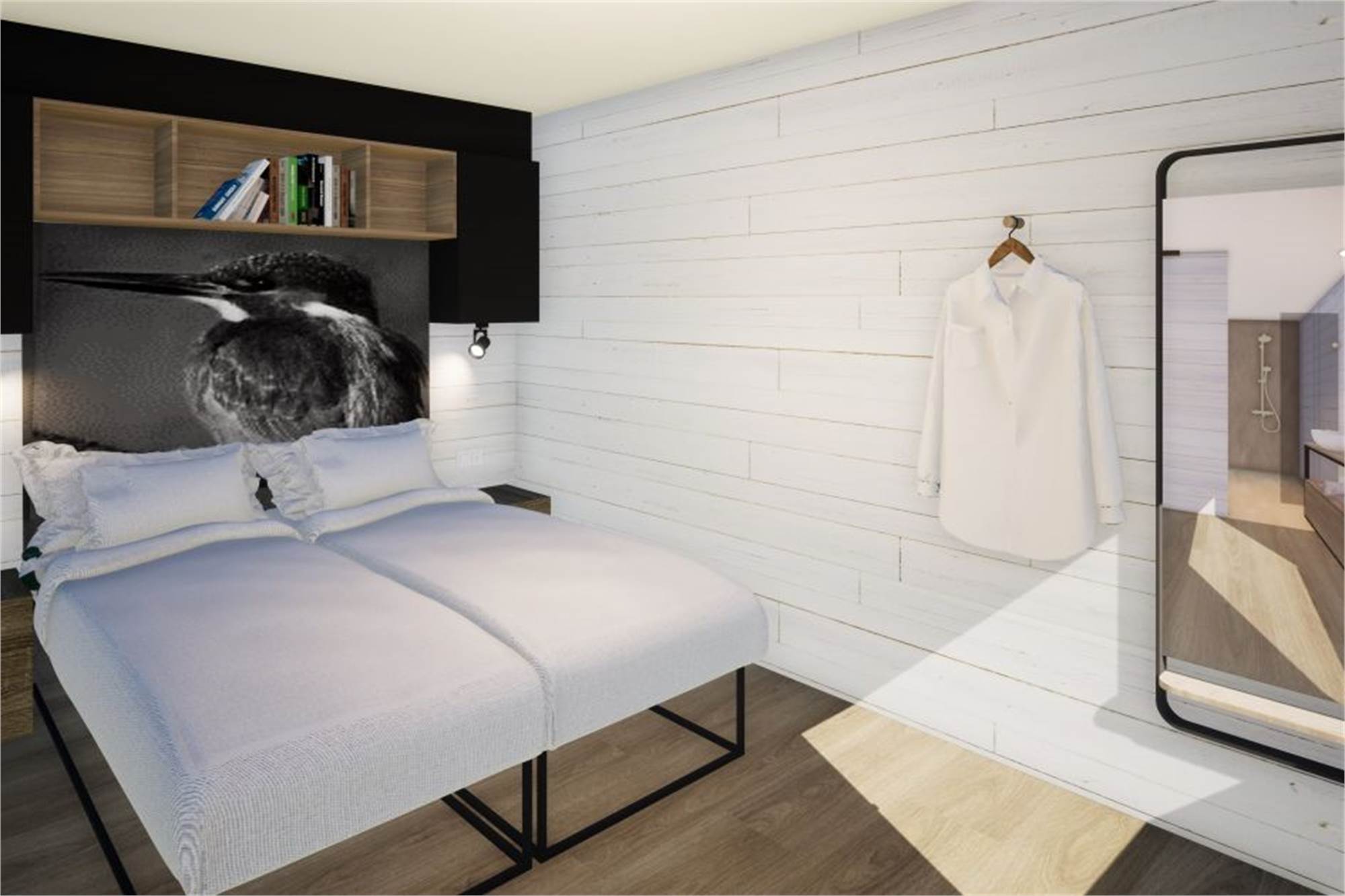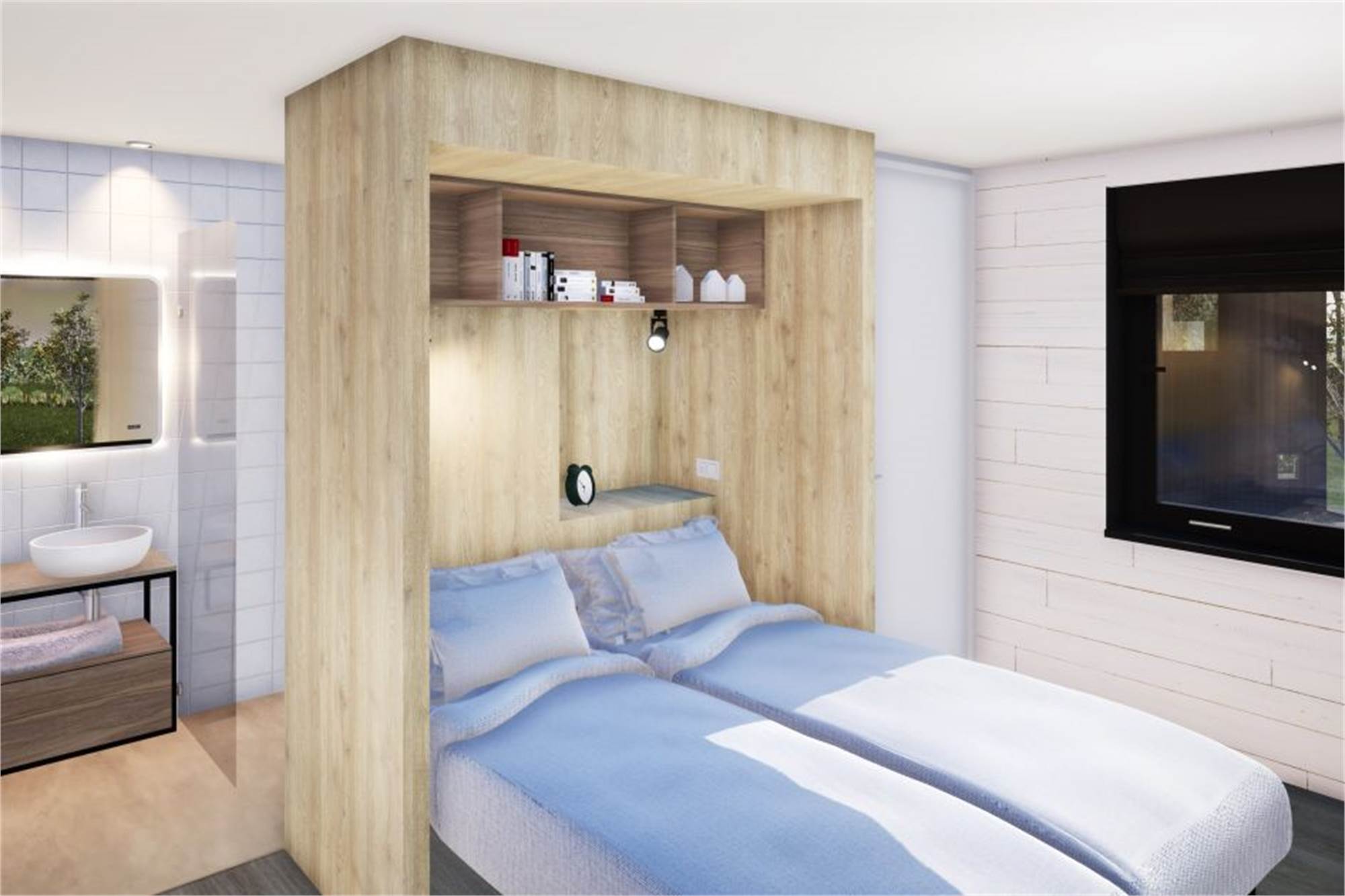 Ce chalet indépendant de plain-pied peut accueillir 4 adultes et 1 bébé. Le chalet compte 3 étages. La salle de séjour compte un coin salon, une télévision et un chauffage au sol. La cuisine ouverte est équipée d'un lave-vaisselle, d'une machine à café à capsules, d'une bouilloire électrique, d'un micro-ondes combiné et d'un réfrigérateur-congélateur. Au premier étage, il y a 1 chambre à coucher avec 2 lits simples et une salle de bain en suite avec douche à l'italienne à effet pluie et chauffage au sol. Au deuxième étage, il y a aussi 1 chambre à coucher avec 2 lits simples et une salle de bain en suite avec douche à l'italienne à effet pluie et chauffage au sol. Les lits sont extra longs, d'une longueur de 210cm. Il y a également des toilettes séparées. Le chalet dispose d'un jardin avec une terrasse équipée de meubles de jardin. Vous pouvez vous garer dans le parking central. Le wifi est à disposition gratuitement.