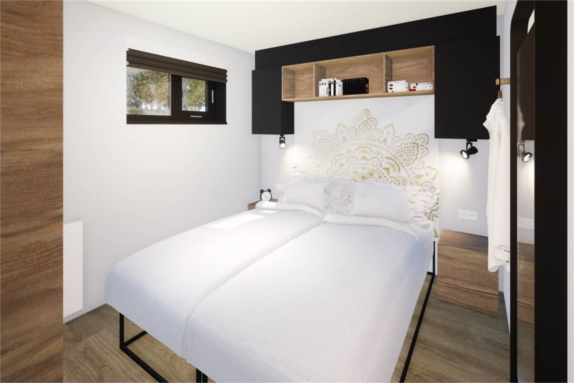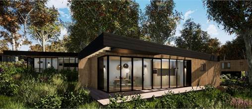 Ce chalet indépendant de plain-pied peut accueillir 4 adultes et 1 bébé. La salle de séjour compte un coin salon, une télévision et un chauffage au sol. La cuisine ouverte est équipée d'un lave-vaisselle, d'une machine à café à capsules, d'une bouilloire électrique, d'un micro-ondes combiné et d'un réfrigérateur-congélateur. Il y a 2 chambres à coucher, chacune avec 2 lits simples. Les lits sont extra longs, d'une longueur de 210cm. La salle de bain dispose d'une douche à l'italienne à effet pluie et du chauffage au sol. Il y a également des toilettes séparées. Le chalet dispose d'un jardin avec une terrasse partiellement couverte équipée de meubles de jardin. Vous pouvez vous garer dans le parking central. Le wifi est à disposition gratuitement.