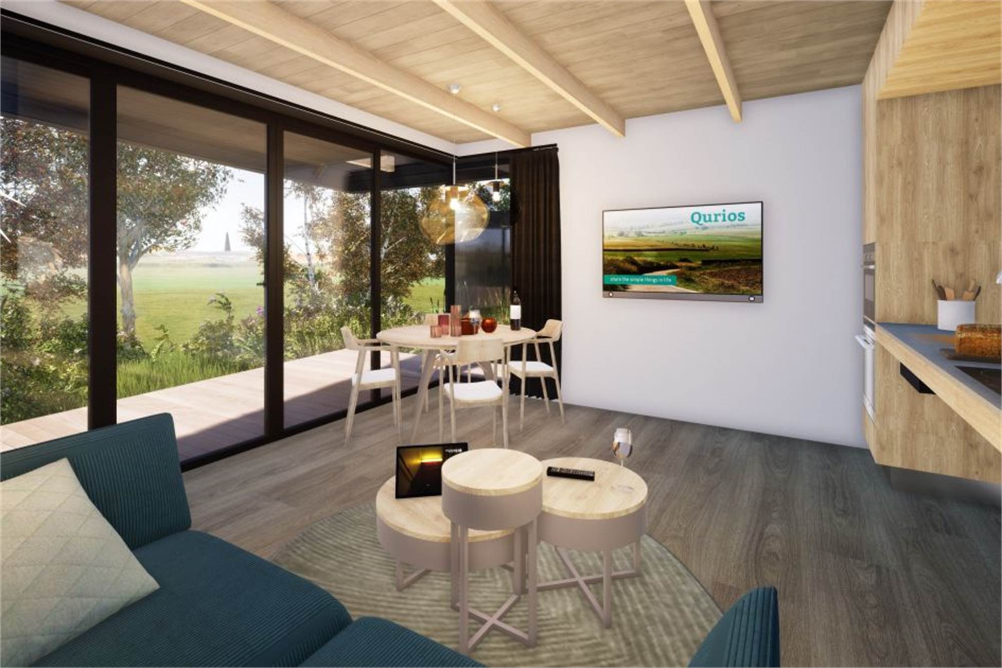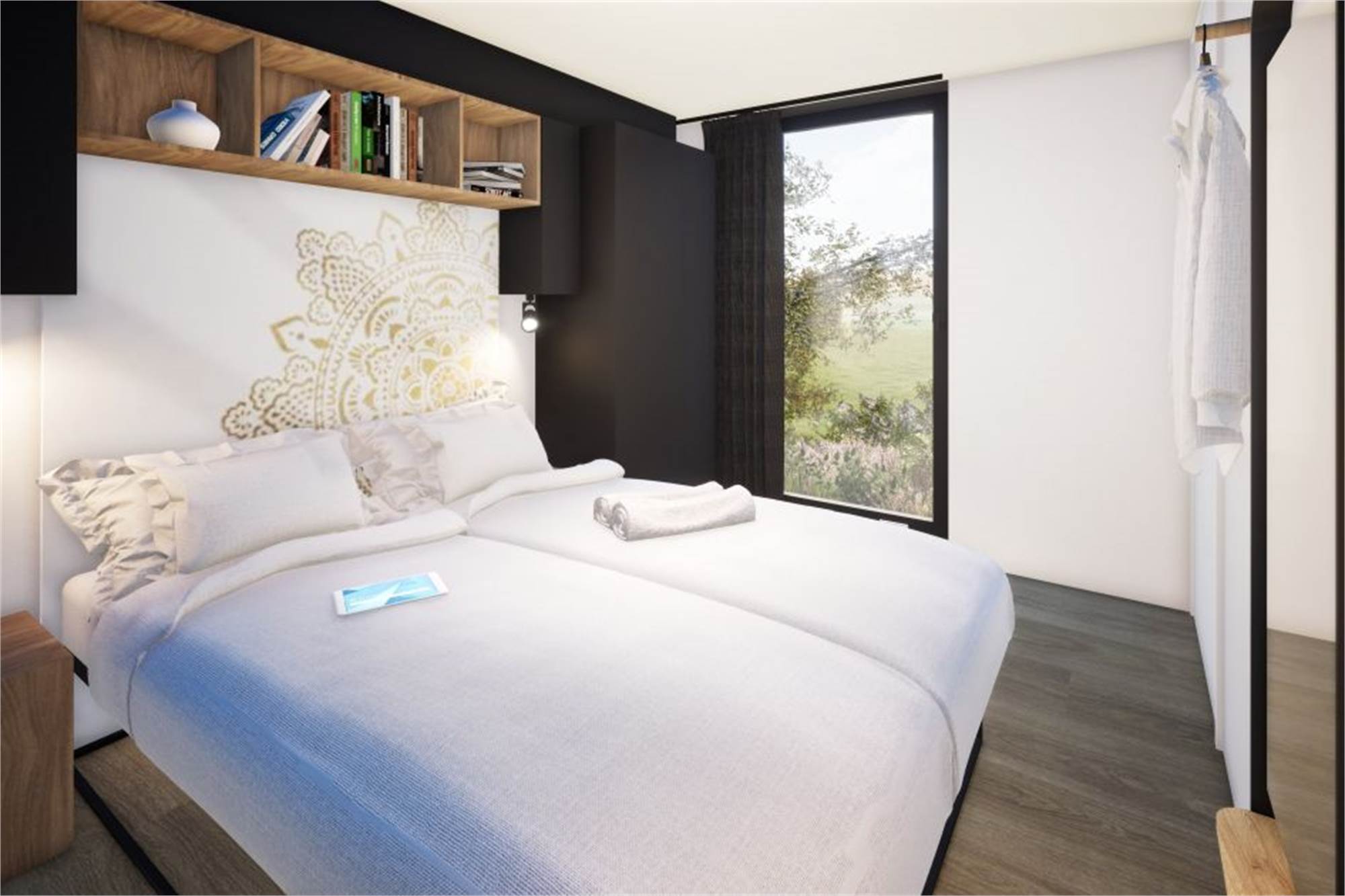Ce chalet indépendant de plain-pied peut accueillir 4 adultes et 1 bébé. Le chalet peut accueillir les handicapés. La salle de séjour compte un coin salon, une télévision et un chauffage au sol. La cuisine ouverte est équipée d'un lave-vaisselle, d'une machine à café à capsules, d'une bouilloire électrique, d'un micro-ondes combiné et d'un réfrigérateur-congélateur. Il y a 2 chambres à coucher, chacune avec 2 lits simples. Les lits sont extra longs, d'une longueur de 210cm. La salle de bain dispose d'une douche à l'italienne à effet pluie, de toilettes et du chauffage au sol. Le chalet dispose d'un jardin avec une terrasse partiellement couverte équipée de meubles de jardin. Vous pouvez vous garer dans le parking central. Le wifi est à disposition gratuitement.