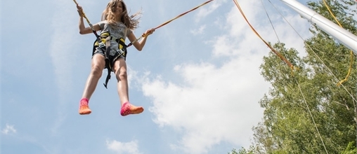 L'Elasto Trampoline est un mélange de saut à l'élastique et de trampoline. Résultat : vous pouvez sauter très haut et même faire des saltos, en toute sécurité. Amusant pour les adultes comme pour les enfants.