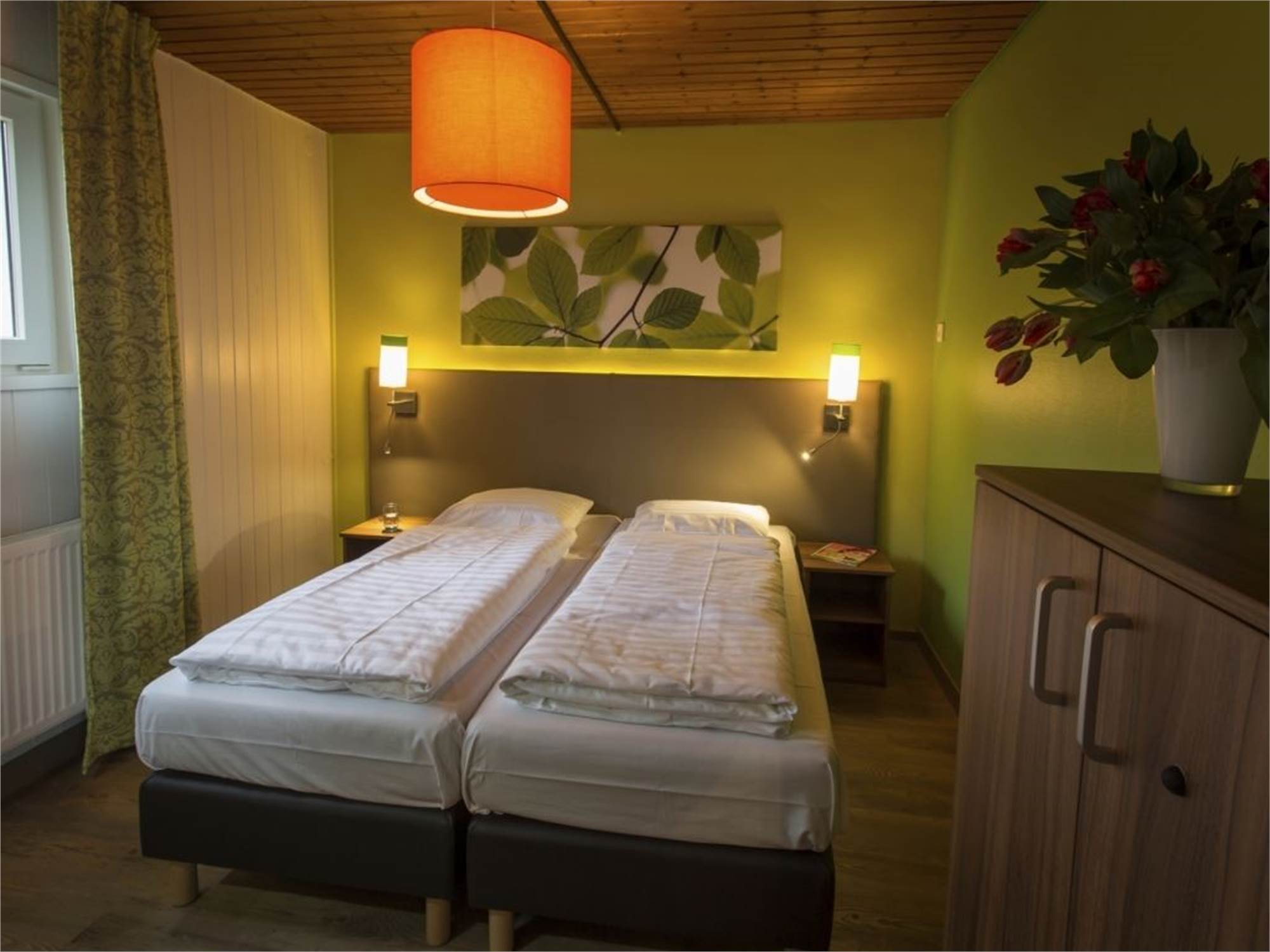 Chambre à coucher avec deux lits 1 personne, couvre matelas Softtopper pour 2 personnes et faltscreen-tv
