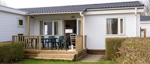Ce chalet de plain-pied semi-détaché peut accueillir jusqu'à 6 personnes. Le logement dispose d'une salle de séjour soigneusement décorée avec un coin salon et une télévision. La cuisine ouverte est équipée d'un lave-vaisselle, d'un micro-ondes et d'une cafetière. Le chalet dispose également de 3 chambres, dont 2 avec des lits superposés et une avec deux lits simples. Il y a également une salle de bains avec douche et toilettes. A l'extérieur, un jardin avec une terrasse meublée.