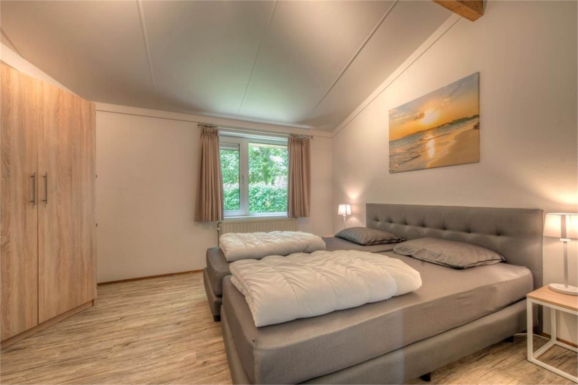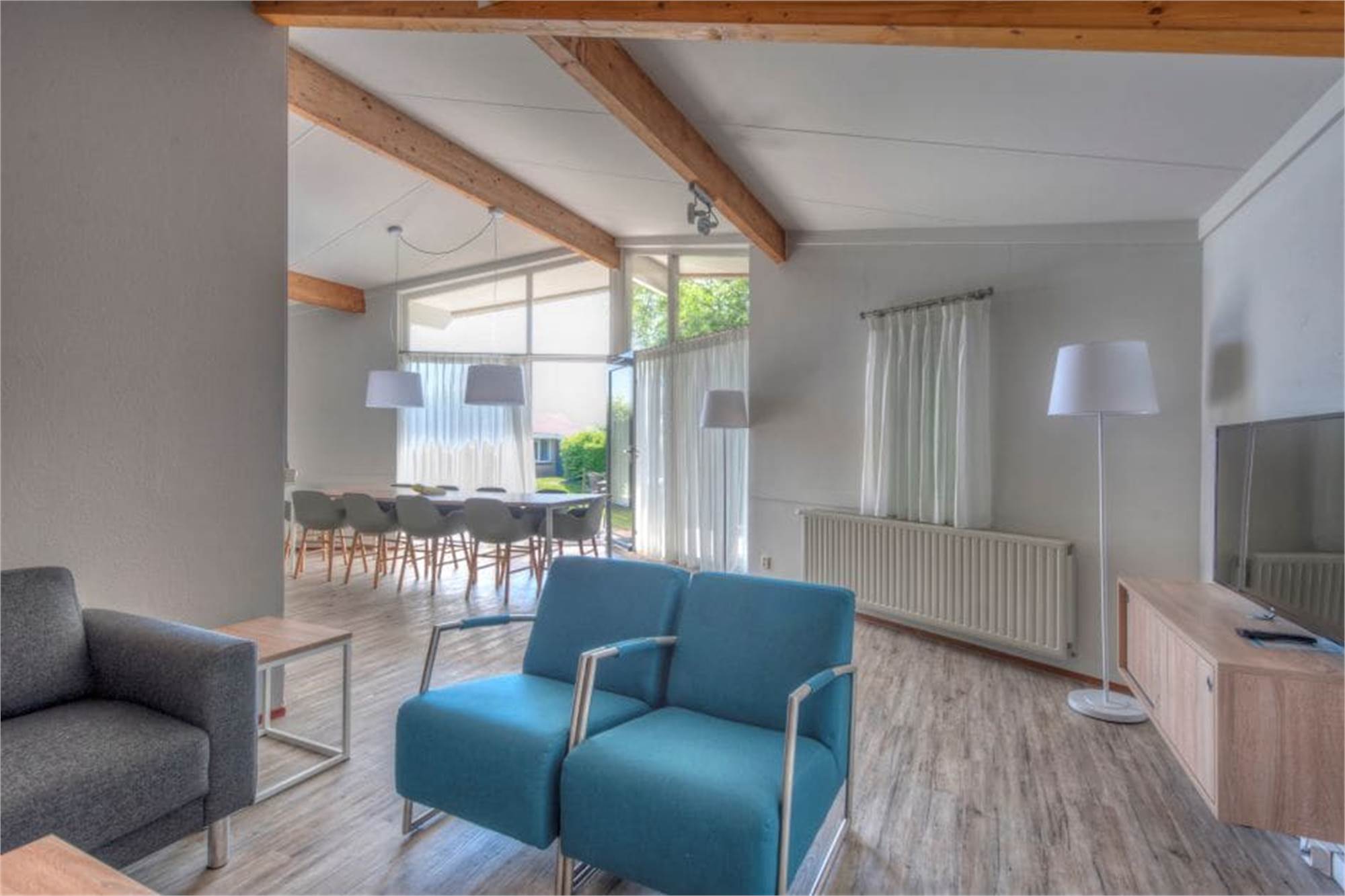 Bungalow pour dix personnes. Ce bungalow dispose d'une salle de séjour conviviale avec coin salon et smart TV. La cuisine ouverte est équipée d’un lave-vaisselle, d’un réfrigérateur avec un compartiment congélateur, d’un micro-ondes combiné et d’une machine à café. Le bungalow dispose de cinq chambres avec chacune deux lits simples avec des sommiers à ressorts. Il y a deux salles de bains avec douche et deux toilettes séparées dans le couloir. A l'extérieur, vous pourrez trouver un jardin avec une terrasse meublée et un débarras. Vous bénéficierez d’une connexion Wifi gratuite dans le bungalow.