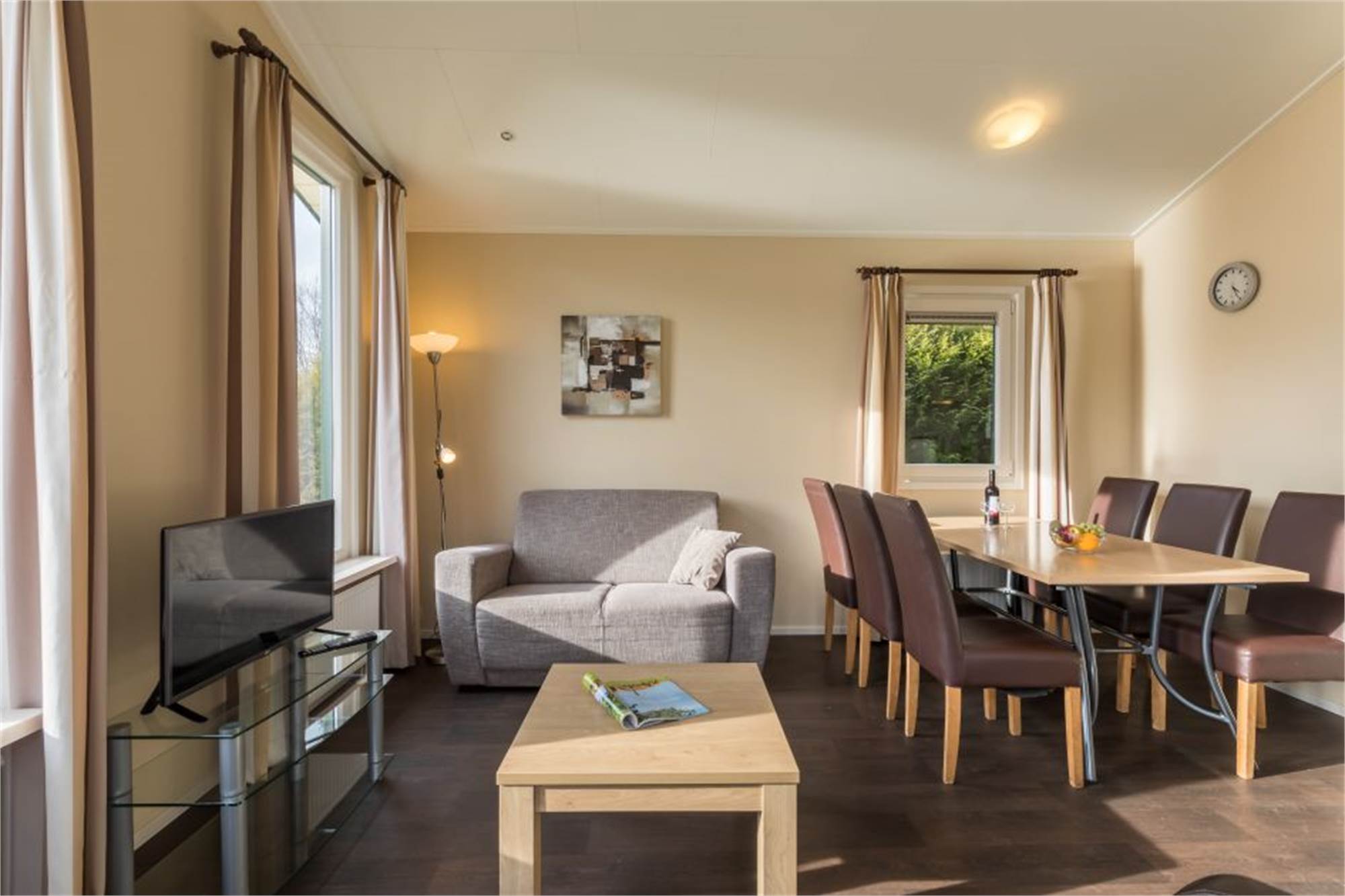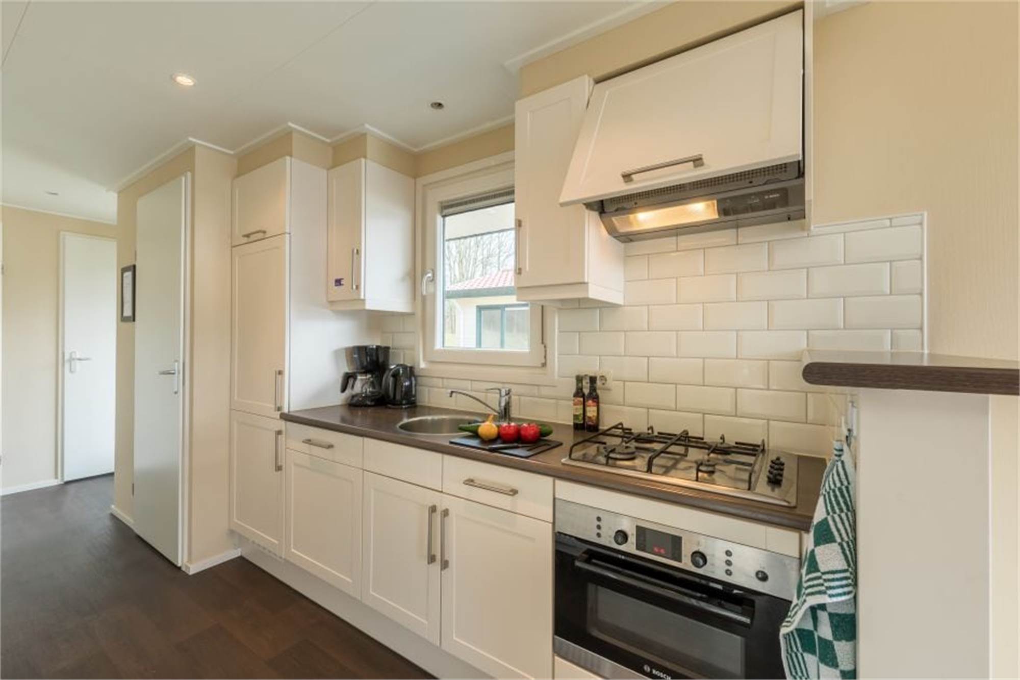 Ce chalet indépendant est de plain-pied et peut accueillir 6 personnes. Le chalet dispose d'un salon et d'une cuisine ouverte avec four micro-ondes combiné, réfrigérateur-congélateur, lave-vaisselle et machine à café. Il y a 3 chambres, 1 avec 2 lits simples avec sommiers à ressorts et 2 avec un lit superposé. Le chalet dispose d'une salle de bains avec douche et toilettes. Il est également équipé d'une terrasse meublée. Vous pourrez profiter d’une connexion Wifi gratuite.