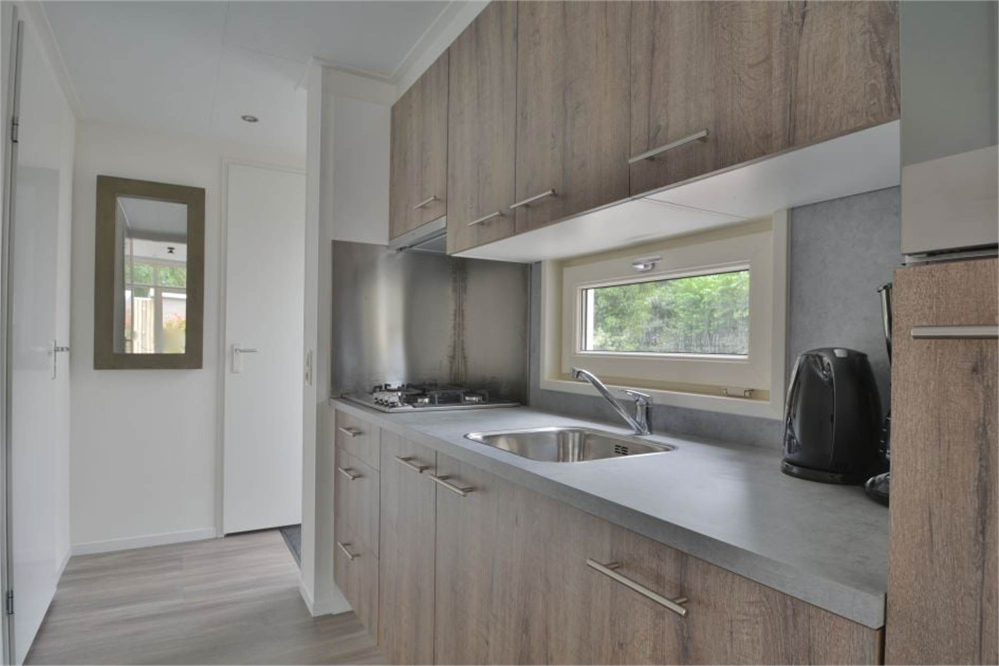 Ce chalet indépendant de plain-pied est adapté pour 4 personnes. La salle de séjour est confortablement aménagée et vous y trouverez la télévision et le lecteur DVD. La cuisine est notamment équipée d'un lave-vaisselle, d'une machine à café à dosettes, d'un micro-ondes combiné et d'un réfrigérateur avec compartiment congélateur. Il y a 2 chambres à coucher, chacune avec 2 lits simples. La salle de bain dispose d'une douche à l'italienne et de toilettes. De plus, le chalet abrite un sauna infrarouge. Dans ce logement, vous pouvez également vous détendre dehors dans le jardin avec terrasse. Des meubles de jardin sont à votre disposition. Il y a des places de stationnement pour votre voiture, près de votre hébergement de vacances. Vous pouvez utiliser le wifi gratuitement.