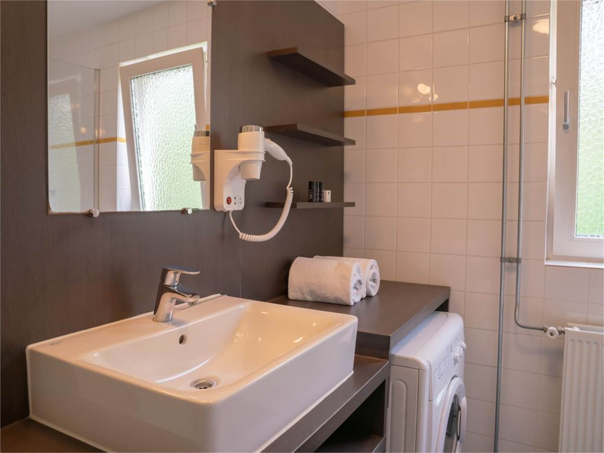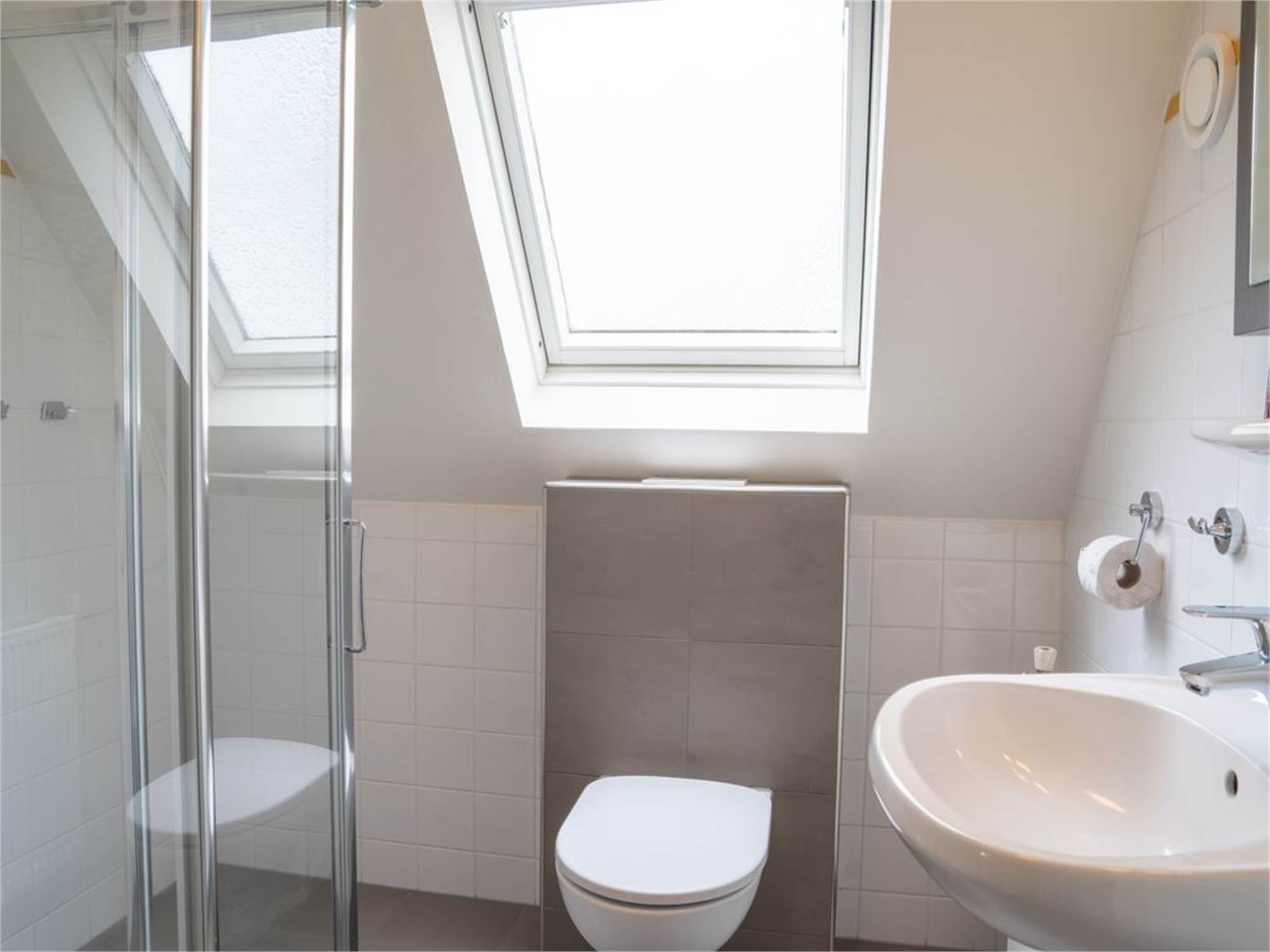 Salle de bains avec douche, lavabo et toilette au premier étage
