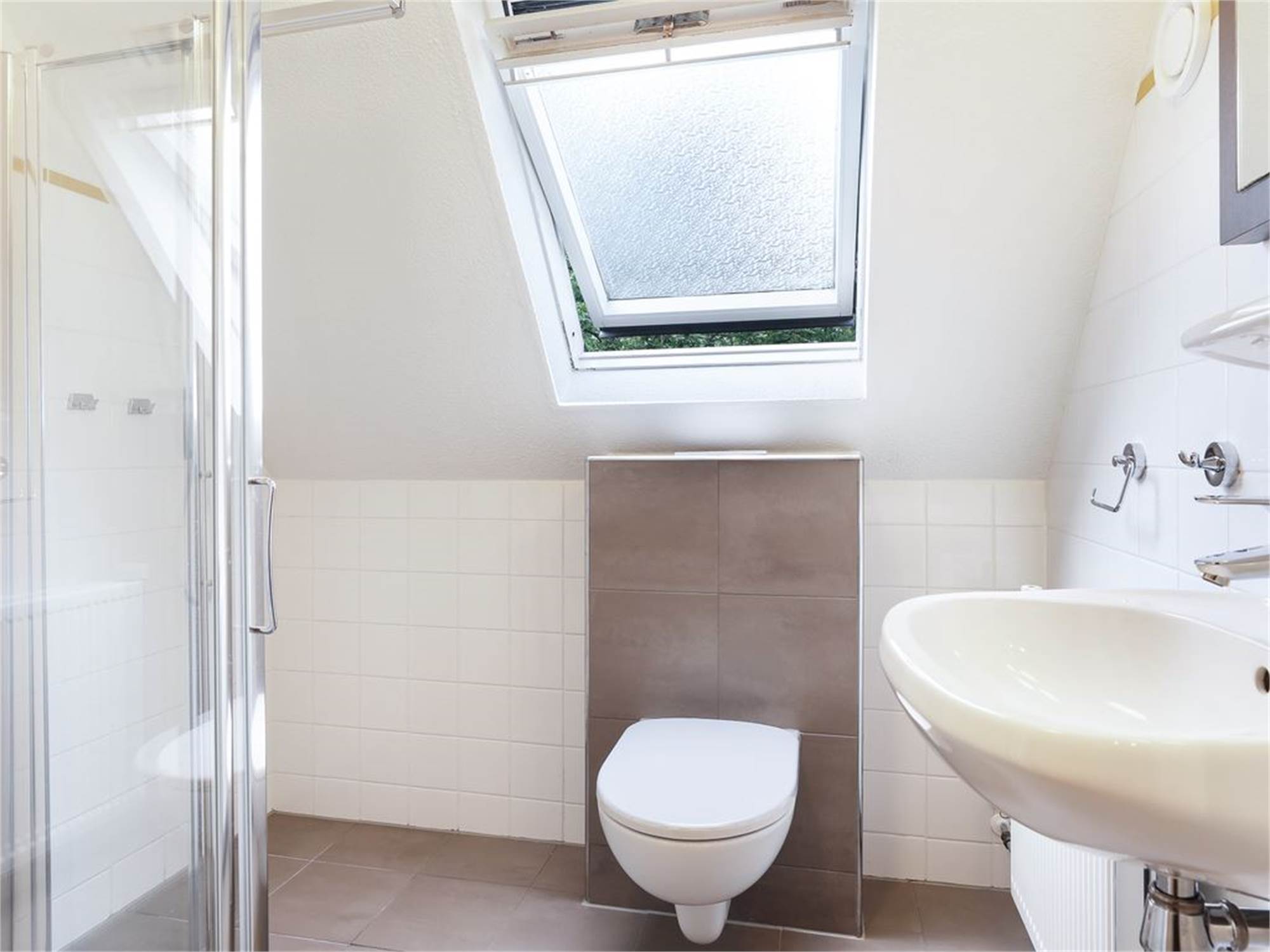 Salle de bains avec douche, lavabo et toilette au premier étage