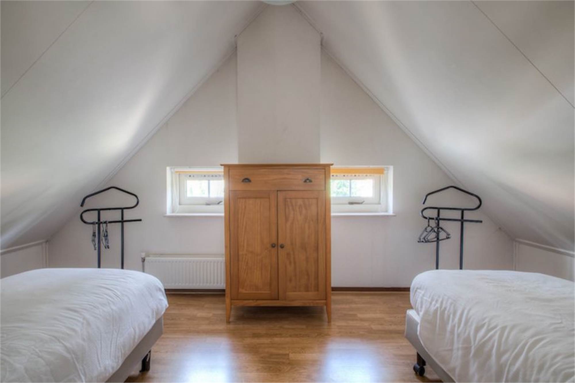 Etage : Deux chambres à coucher chacune avec deux lits simples avec sommiers à ressorts. Le lit-clos sur le palier est adapté à deux enfants ou à un adulte.